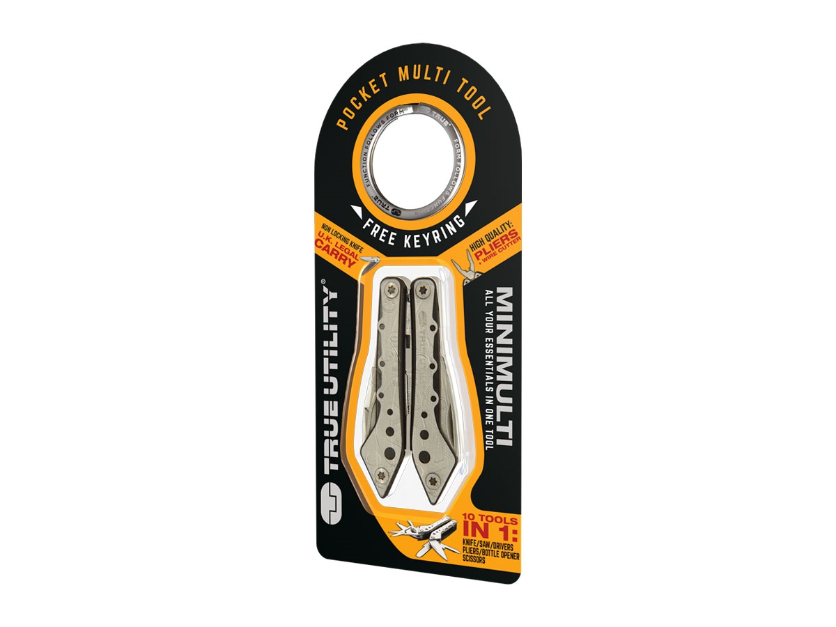 -  Pinza  -  Coltello  -  Tagliafili  -  Sega  -  Forbici  - 2 Cacciaviti  piatti  -  Cacciavite Philips-  Limetta-  Apribottiglia