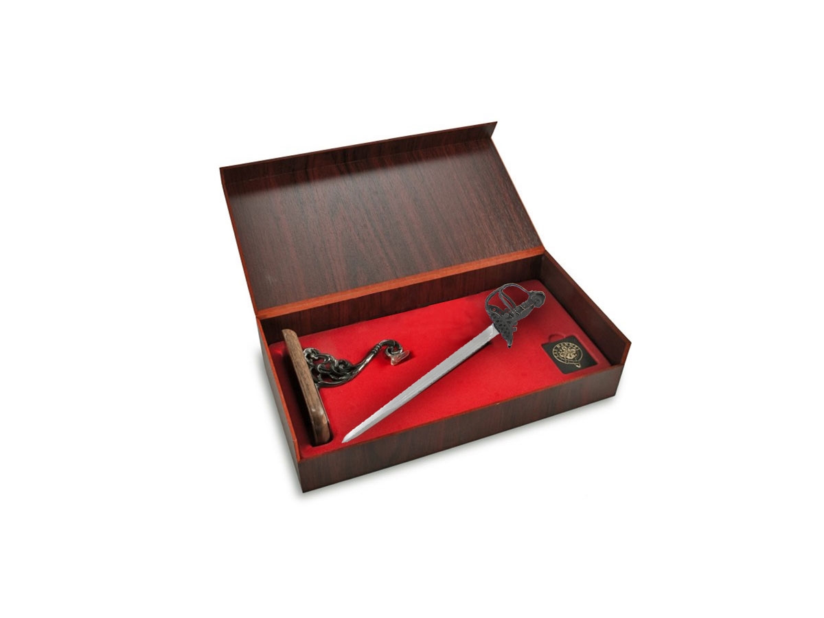 Le mini spade sono repliche in miniatura di spade della Hanwei. Hanno la lama in acciaio temperato e l'elsa riprodotta con gli stessi dettagli delle spade normali. Hanno un display in legno e metallo con una placca metallica che identifica la spada, la sua origine ed il suo periodo. Sono confezionate in una bella scatola di presentazione.