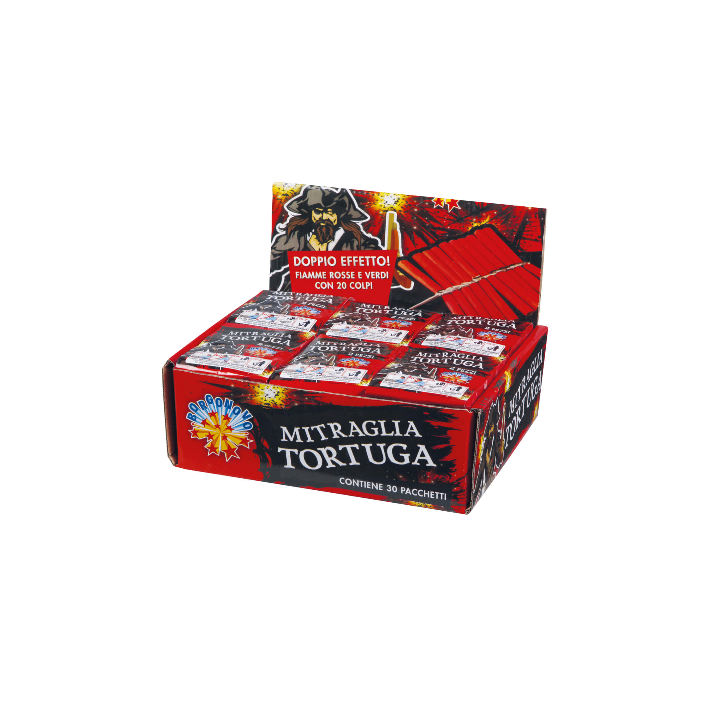 La Mitraglia Tortuga Borgonovo è un articolo pirotecnico unico, capace di offrire un doppio effetto spettacolare con fiamme verdi e rosse. Con 20 colpi ravvicinati, questo prodotto è perfetto per chi desidera un'esperienza visiva e sonora di grande impatto, ideale per eventi festivi e celebrazioni.• Effetto Fiamme Verdi e Rosse: Ogni utilizzo della Mitraglia Tortuga genera una sequenza di 20 colpi con un'esplosione di fiamme dai colori vivaci, verdi e rosse, che illuminano la scena e rendono ogni evento più entusiasmante.• Categoria F2: Questo prodotto appartiene alla categoria EU F2, garantendo un utilizzo sicuro in spazi aperti e sotto condizioni controllate, nel pieno rispetto delle normative di sicurezza europee.• Massa Attiva 2,4g: Con una massa attiva di 2,4 grammi per confezione, la Mitraglia Tortuga offre una performance pirotecnica bilanciata e sicura, mantenendo alti livelli di spettacolarità senza sacrificare la sicurezza.La Mitraglia Tortuga Borgonovo è la scelta ideale per chi cerca un effetto scenico unico e sicuro, con una combinazione di fiamme colorate e colpi ravvicinati che aggiungono fascino e divertimento a qualsiasi festa
