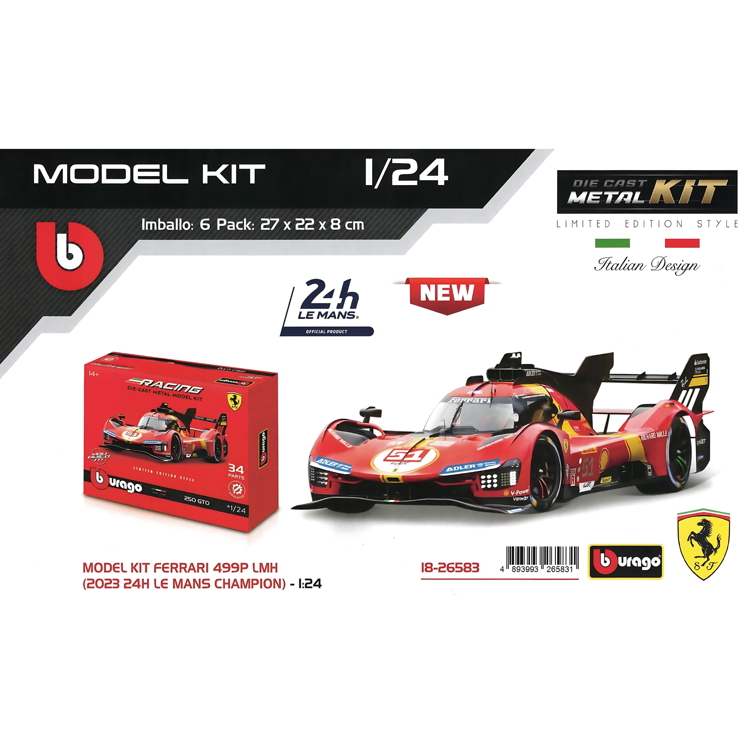 Vivi un'avventura hands-on con il Model kit Ferrari 499P LMH - 2023 24H Le Mans Champion in scala 1:24 di Bburago. Costruisci il tuo modello in scala 1:24 e sperimenta la potenza e la bellezza di una delle auto più iconiche al mondo.• Dettagli Realistici: Ogni dettaglio della Ferrari 499P LMH è riprodotto con precisione, offrendo un'esperienza coinvolgente che soddisfa la curiosità degli appassionati di meccanica e dei piccoli ingegneri.• Materiali di Alta Qualità: Realizzato con dettagli in metallo pressofuso e parti in plastica di alta qualità, questo model kit garantisce durabilità e realismo, perfetto per collezionisti e appassionati di modellismo.• Facile da Montare: Il kit comprende 34 pezzi e viene fornito con istruzioni di montaggio dettagliate, rendendo l'assemblaggio semplice e divertente.• Esperienza Coinvolgente: Porta la potenza della Ferrari 499P LMH nelle tue mani! Questo model kit ti permette di costruire una replica fedele, perfetta in ogni dettaglio, offrendo una soddisfacente esperienza di costruzione e collezionismo.• Contenuto della Confezione: Il kit include il modello da assemblare e le istruzioni di montaggio dettagliate, tutto ciò che serve per creare una replica accurata della Ferrari 499P LMH.Alimenta la tua passione per la meccanica e l'automobilismo con il Model kit di Bburago. La perfezione dei dettagli e la qualità costruttiva ti aspettano, rendendo questo model kit un'aggiunta eccellente a qualsiasi collezione.