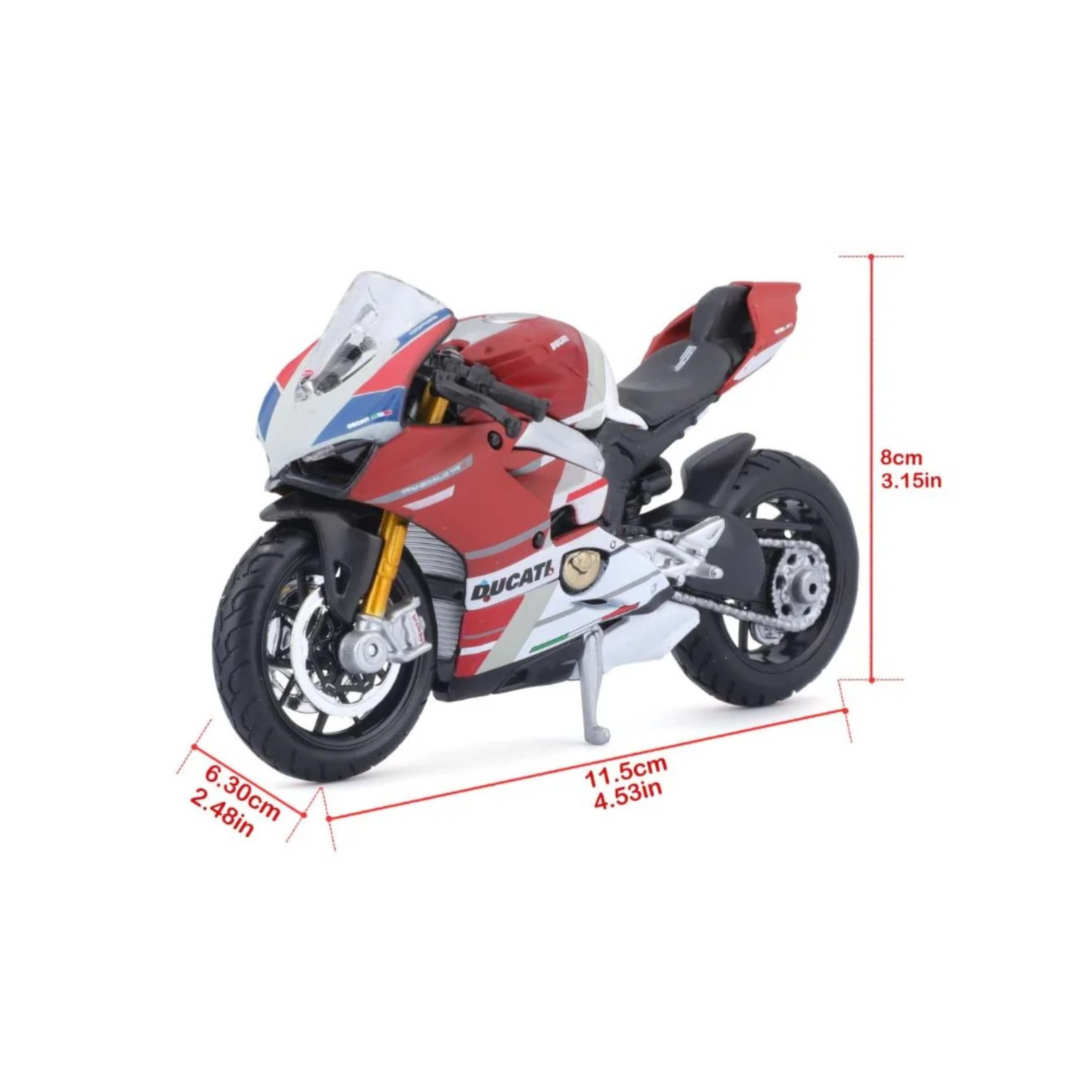 I modellini Maisto Ducati scala 1:18 sono una perfetta sintesi tra passione per il motorsport e cura per il dettaglio, pensati per entusiasmare collezionisti, appassionati di moto e amanti del design italiano. Ogni riproduzione rappresenta l'inconfondibile stile Ducati, con linee aggressive, grafiche accattivanti e finiture che richiamano fedelmente l’originale.• Riproduzione fedele in scala 1:18: ogni modello è realizzato con cura nei dettagli, rispettando le proporzioni e le caratteristiche iconiche delle moto Ducati originali, rendendolo ideale sia per esposizione che per collezionismo.• Colorazioni e modelli assortiti: l’assortimento include diversi modelli Ducati tra cui versioni racing e naked, con colorazioni vivaci e dinamiche. La varietà del contenuto rende ogni espositore unico e sorprendente.• Materiali robusti e finiture realistiche: i modellini sono costruiti in metallo pressofuso con alcune parti in plastica, garantendo resistenza e una sensazione di qualità superiore al tatto e alla vista.• Età consigliata 3+ anni: adatto anche come regalo per i più piccoli, ma con un impatto visivo che lo rende apprezzato da collezionisti adulti.• Display da 12 pezzi: ogni confezione contiene 12 modellini assortiti, perfetta per esposizione da banco o per creare una collezione immediata.Le moto die-cast Maisto Ducati 1:18 sono molto più di semplici giocattoli: sono miniature che catturano l’essenza della velocità e della potenza su due ruote, trasformando ogni spazio in un piccolo circuito da sogno.Misure indicative singolo modellino: lunghezza 11,5 cm, larghezza 6,3 cm, altezza 8 cm.