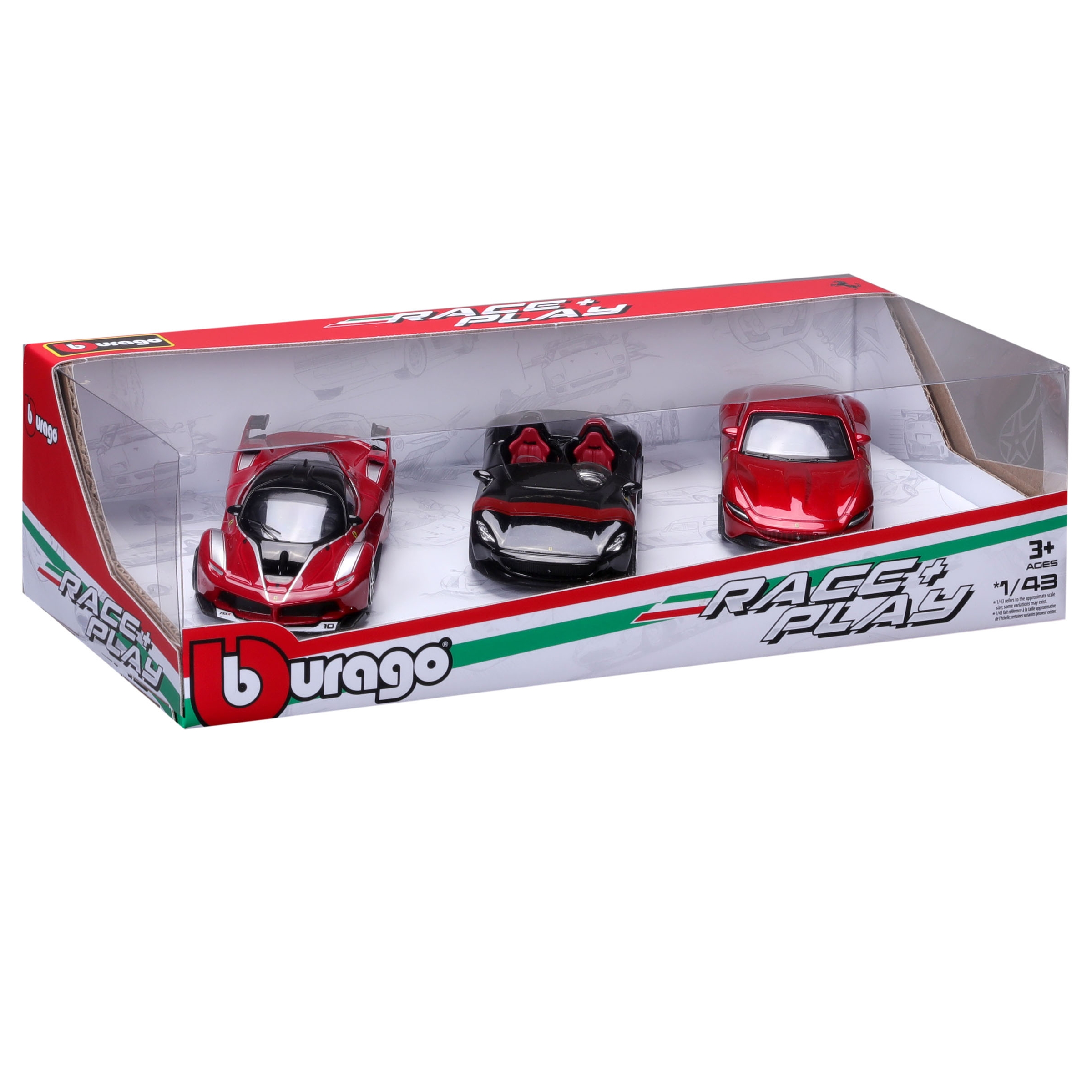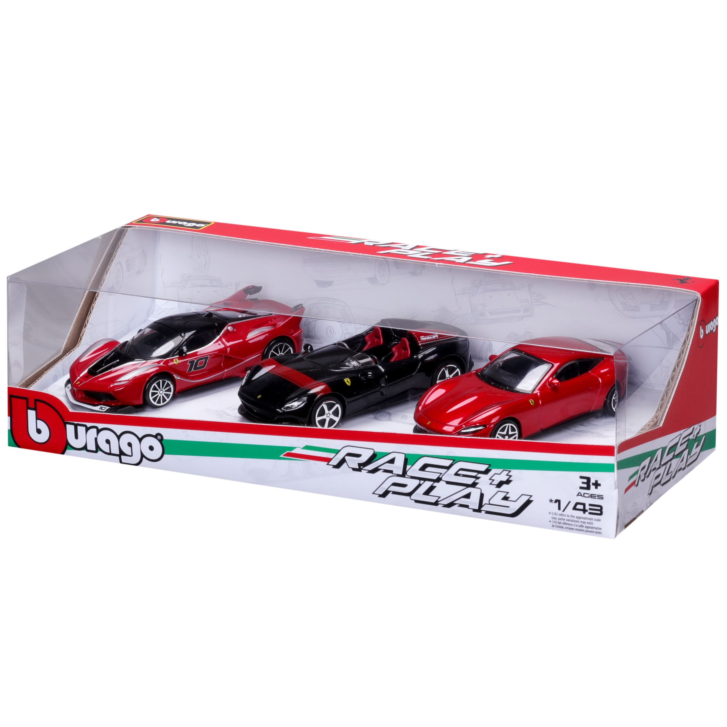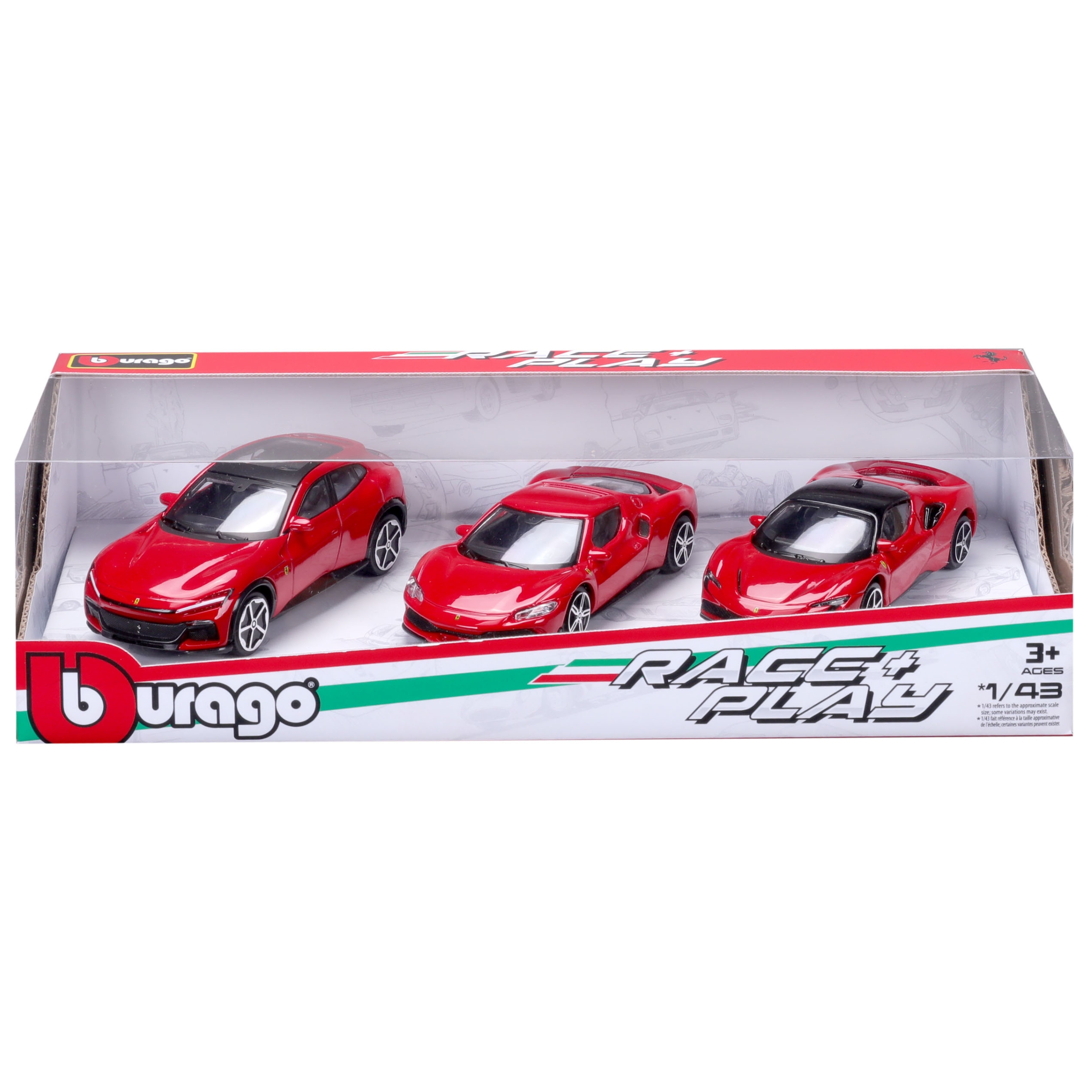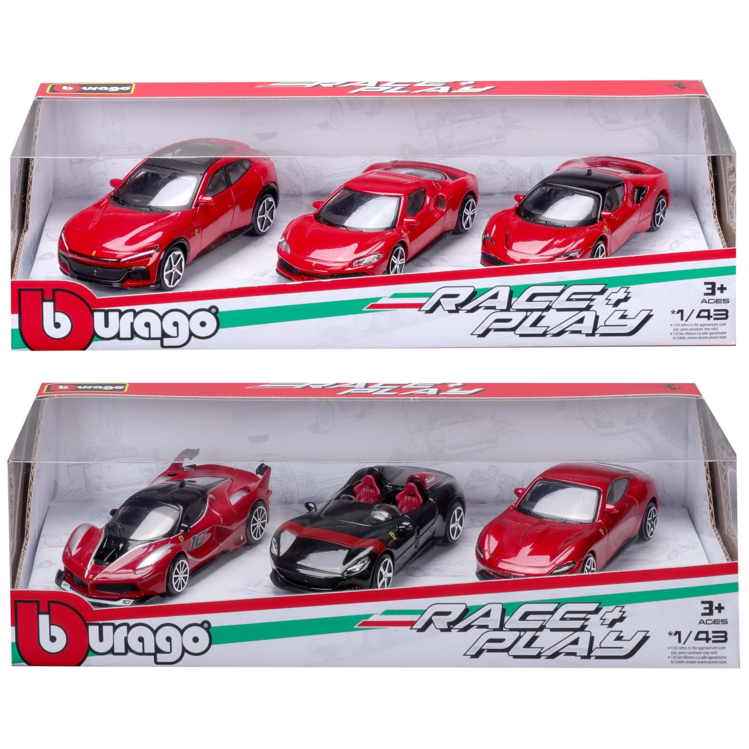 Il Gift Pack Ferrari 3 Modellini Auto Die Cast 1:43 è una selezione straordinaria di auto Ferrari in scala 1:43, perfetta per collezionisti e appassionati. Questa confezione regalo offre una varietà di modelli accuratamente riprodotti con dettagli eccezionali.• Dettagli Realistici: Ogni modellino è caratterizzato da una riproduzione fedele dei dettagli delle vetture Ferrari originali. Dai loghi agli elementi del design, ogni aspetto è curato per offrire un prodotto autentico e visivamente accattivante.• Materiale Die Cast di Alta Qualità: Realizzati in materiale Die Cast resistente, questi modellini garantiscono robustezza e durabilità nel tempo, rendendoli perfetti sia per l'esposizione che per il gioco.• Scala: La scala 1:43 consente di apprezzare ogni minimo dettaglio in una dimensione compatta e pratica, ideale per collezionisti che desiderano una collezione di alta qualità con un ingombro ridotto.• Design Iconico: I modellini catturano l'essenza delle vetture originali, con linee eleganti e colorazioni vivaci che rendono ogni pezzo un elemento distintivo nella tua collezione.• Ampia Selezione: Questo gift pack include 2 differenti assortimenti:Assortimento A:Ferrari 296 GTBPurosangueSF 90 StradaleAssortimento B:Monza SP2FXXX KRoma• Perfetto per Collezionisti: Questo gift pack è un'aggiunta eccellente per qualsiasi collezione di auto in scala, offrendo una selezione di modelli Ferrari che rappresentano l'eccellenza automobilistica italiana.Il Gift Pack Ferrari 3 Modellini Auto Die Cast 1:43 è il regalo perfetto per gli appassionati di Ferrari, combinando estetica e qualità in un'unica confezione. Ideale per chi desidera portare a casa un pezzo della leggenda Ferrari.