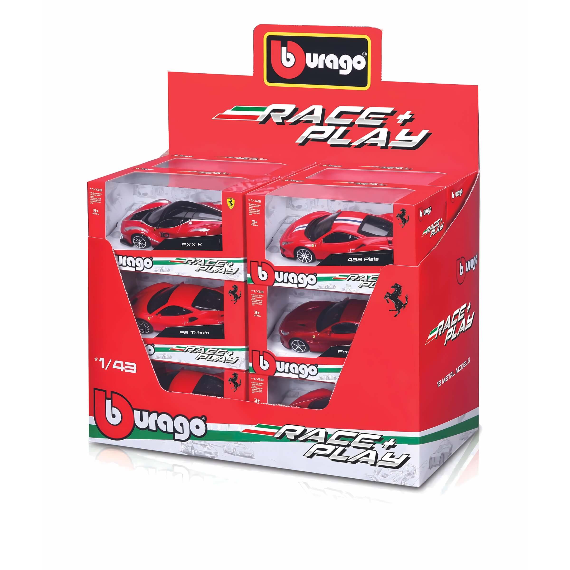 La collezione di modellini auto Die Cast Bburago Ferrari Race & Play in scala 1:43 è un'esperienza imperdibile per tutti gli appassionati di Ferrari. Questa serie offre una varietà di modelli dettagliati e autentici, perfetti per collezionisti di tutte le età.• Dettagli Realistici: Ogni modellino è caratterizzato da una riproduzione accurata e dettagliata delle vetture Ferrari, dai loghi agli elementi del design. Questo garantisce un prodotto fedele all'originale e visivamente accattivante.• Materiale Die Cast di Alta Qualità: Realizzati in materiale Die Cast resistente, questi modellini assicurano robustezza e durabilità nel tempo, rendendoli perfetti per l'esposizione e per il gioco.• Scala: La scala 1:43 permette di apprezzare ogni minimo dettaglio in una dimensione compatta e pratica. Ideali per collezionisti che desiderano una collezione di alta qualità con un ingombro minimo.• Design Iconico: I modellini Ferrari Race & Play catturano l'essenza delle vetture originali, con linee eleganti e colorazioni vivaci che rendono ogni pezzo un elemento distintivo nella tua collezione.• Ampia Selezione: Questa collezione include una varietà di modelli, offrendo una vasta scelta per gli appassionati. Ogni box contiene:1x28-36047 Roma Met Red1x28-31137 LaFerrari Red1x28-31125 F40 Competizione Red1x28-31101 Enzo Ferrari Red1x28-36052 488 Pista Red1x28-36026 488 Spider Red1x28-36050 Purosangue Red1x28-36051 Portofino Met Red1x28-36055 Ferrari 296 GTB Red1x18-36049 Ferrari Monza SP2 Black and Red1x18-36024 FXXX K1x18-31137 LaFerrari Aperta BlackLa collezione di modellini auto Die Cast Bburago Ferrari Race & Play in scala 1:43 è un tributo perfetto all'eccellenza automobilistica della Ferrari. Ideale per chi desidera possedere un pezzo della storia delle corse in una forma compatta e dettagliata.