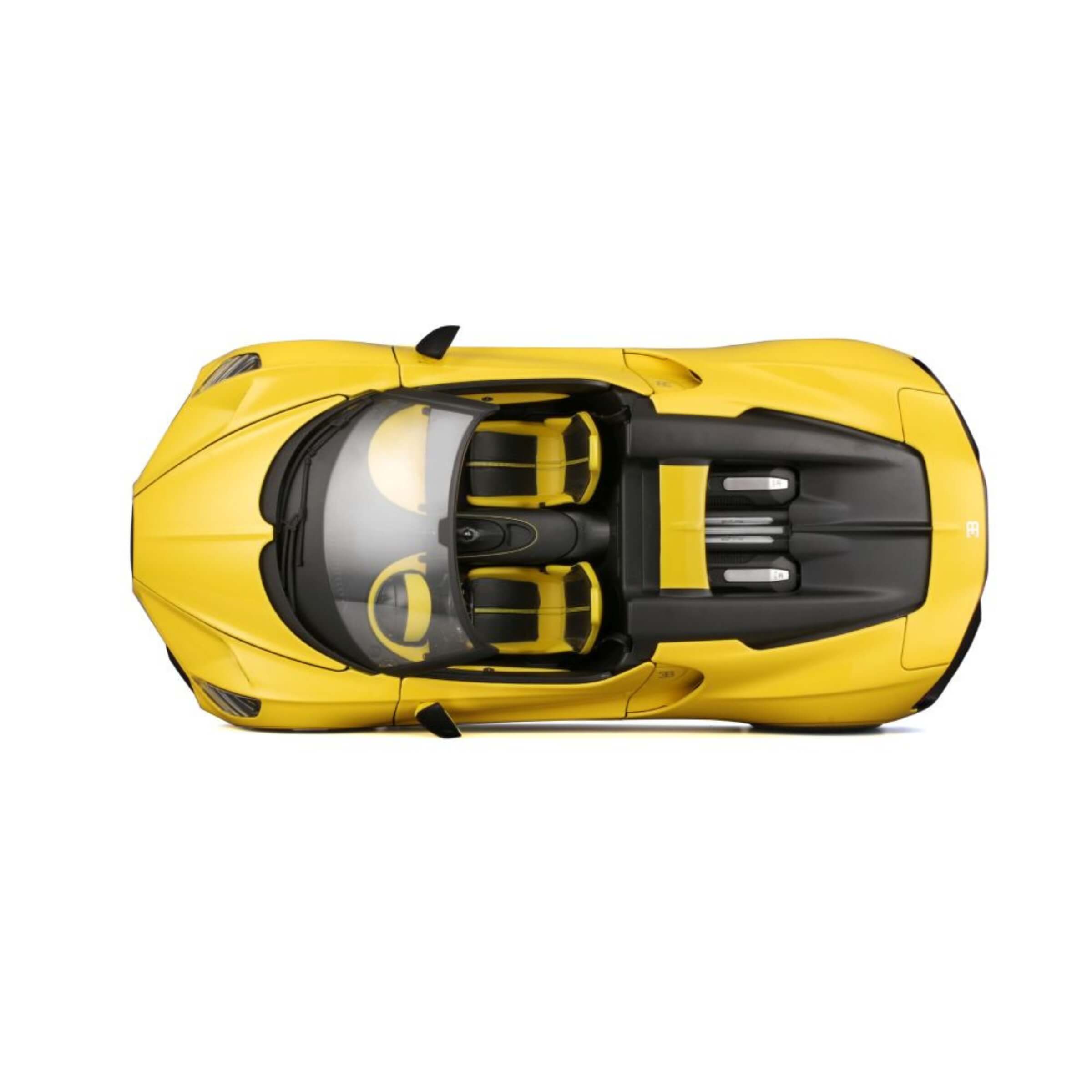 Immergiti nel lusso e nella raffinatezza con il modellino die-cast Bugatti Mistral in scala 1:18. Prodotto con cura artigianale da Bburago, questo capolavoro è una replica perfetta della prestigiosa hypercar, catturando ogni dettaglio per entusiasmare appassionati e collezionisti.• Riproduzione fedele in scala 1:18: La Bugatti Mistral è stata replicata con una precisione straordinaria, dalle linee aerodinamiche e muscolose della carrozzeria al design curato degli interni, per offrire un’esperienza visiva e tattile unica.• Materiali di altissima qualità: Realizzato in metallo pressofuso con componenti in plastica, questo modellino offre solidità e durabilità, unendo eleganza e robustezza per un prodotto che resiste nel tempo.• Dettagli sorprendenti: Le portiere apribili rivelano un abitacolo accuratamente rifinito, con sedili lussuosi e un cruscotto che riflette fedelmente il design iconico della Bugatti. Ogni componente è stato progettato per catturare l’essenza del lusso e delle prestazioni.• Funzionalità interattive: Le ruote girevoli e lo sterzo funzionante migliorano l’interattività, offrendo la possibilità di apprezzare la dinamicità della vettura anche in versione modellino.• Design esclusivo: La silhouette elegante della Bugatti Mistral e il suo aspetto maestoso rendono questo modellino un pezzo straordinario, perfetto per chi ama il design automobilistico di altissimo livello.Il modellino Bugatti Mistral scala 1:18 di Bburago è più di un oggetto da collezione: è una celebrazione dello stile, delle prestazioni e dell’artigianalità. Ideale per arricchire una collezione o come regalo raffinato per un appassionato di automobili di lusso.Adatto a tutte le età a partire dai 3 anni, questo prodotto è conforme alle normative europee di sicurezza, garantendo un’esperienza sicura e piacevole. La Bugatti Mistral scala 1:18 è una sintesi perfetta di lusso, precisione e fascino, pronta a conquistare l’attenzione e l’ammirazione di chiunque la osservi.