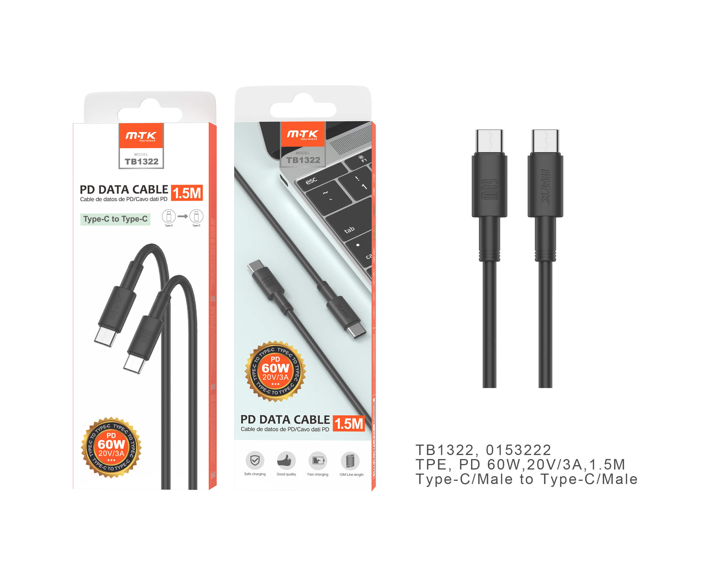 MOVTEK CAVO DATI TYPE-C to TYPE-C NERO 1,5m 60W - TB1322