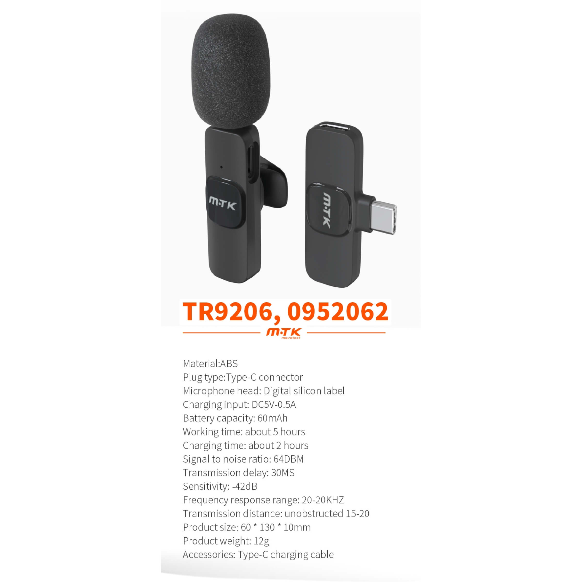 Il mini microfono lavalier wireless Movtek TR9206 offre tutto ciò di cui hai bisogno per registrazioni di alta qualità, che tu sia un professionista o un principiante. Grazie alla sua compatibilità con dispositivi Type-C, è uno strumento versatile e affidabile per ogni situazione.