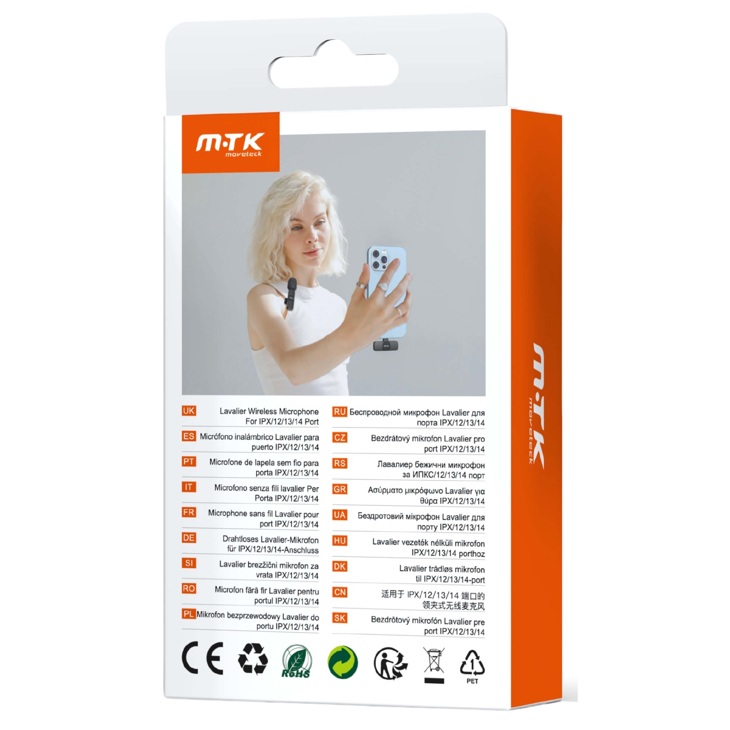 Il mini microfono lavalier wireless Movtek rappresenta la soluzione ideale per chi cerca qualità audio senza compromessi e massima comodità. Grazie alla sua tecnologia wireless e alla compatibilità con i dispositivi dotati di connettore Lightning , è perfetto per vlog, interviste, conferenze e molto altro.• Compatibilità ampia : Il microfono è progettato per dispositivi iPhone IPX/12/13/14, garantendo una connessione stabile e affidabile. È compatibile con le porte Lightning, eliminando la necessità di adattatori esterni.• Audio di alta qualità : Dotato di una testa del microfono in silicone digitale , il mini microfono offre una riproduzione vocale chiara e priva di distorsioni. La sensibilità di -42dB assicura che ogni parola venga catturata con precisione, mentre il rapporto segnale-rumore di 64dBM riduce i disturbi indesiderati.• Batteria a lunga durata : Grazie alla capacità della batteria da 60mAh , puoi godere di circa 5 ore di utilizzo continuo. Il tempo di ricarica è di sole 2 ore, rendendolo uno strumento affidabile per lunghi periodi di lavoro.• Design leggero e compatto : Con un peso di soli 12g e dimensioni di 60x130x10mm, il mini microfono è incredibilmente portatile. È facile da trasportare e da utilizzare in qualsiasi situazione, senza ingombrare.• Connessione stabile e senza ritardi : La latenza di trasmissione di appena 30ms ti garantisce un suono sincronizzato, ideale per registrazioni video professionali. La distanza di trasmissione senza ostacoli raggiunge i 20 metri, consentendoti libertà di movimento durante l'uso.• Accessori inclusi : Nella confezione è presente un cavo di ricarica Type-C, assicurando una ricarica veloce e semplice.Il mini microfono lavalier wireless Movtek TR9207 è la scelta perfetta per chiunque necessiti di un dispositivo audio portatile, versatile e dalle elevate prestazioni. La sua affidabilità e qualità lo rendono adatto sia all'uso professionale che quotidiano, assicurando registrazioni sempre cristalline e prive di interferenze.