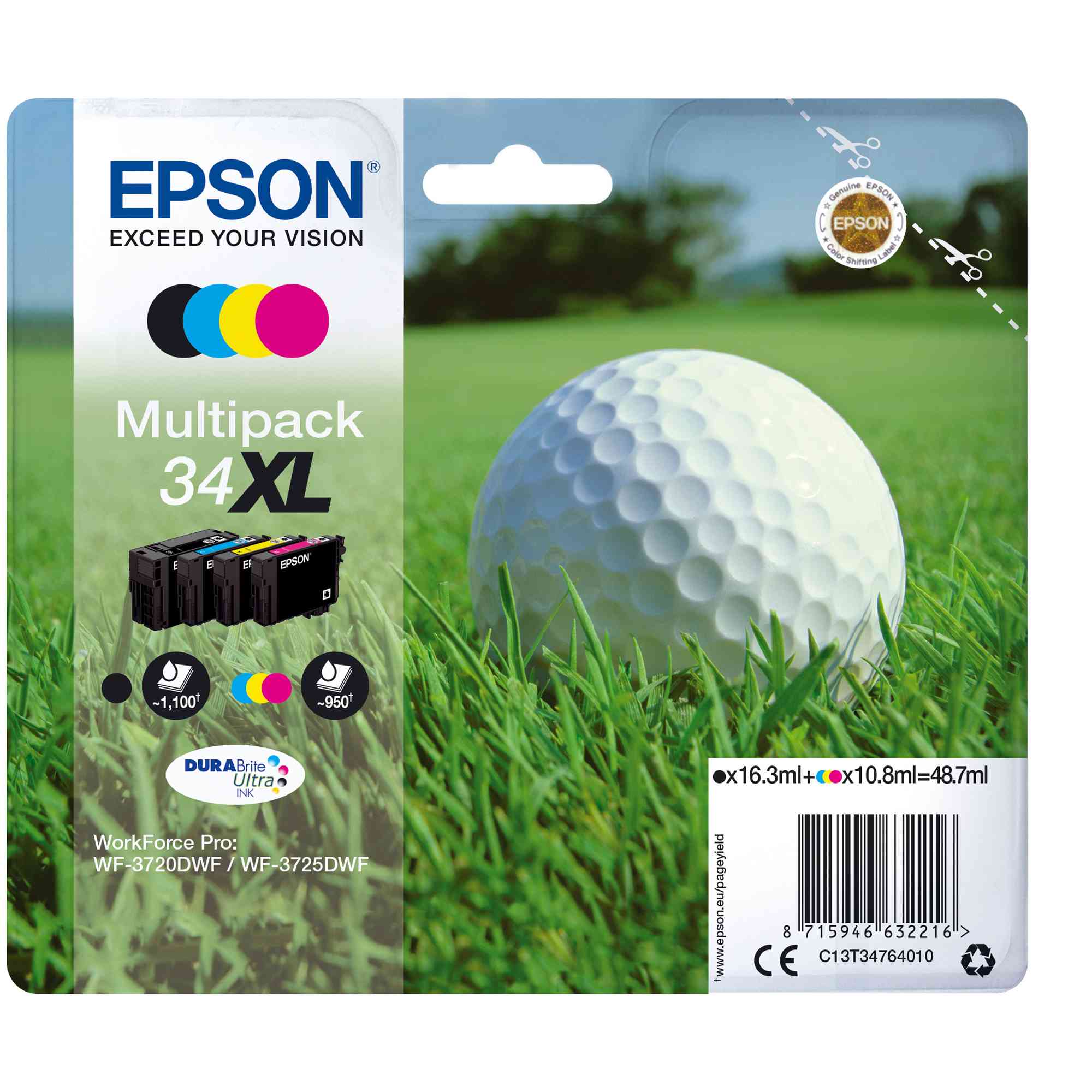 CONF. 4 CARTUCCE INK MULTIPACK 1 PER COLORE 34XL PALLINA DA GOLF