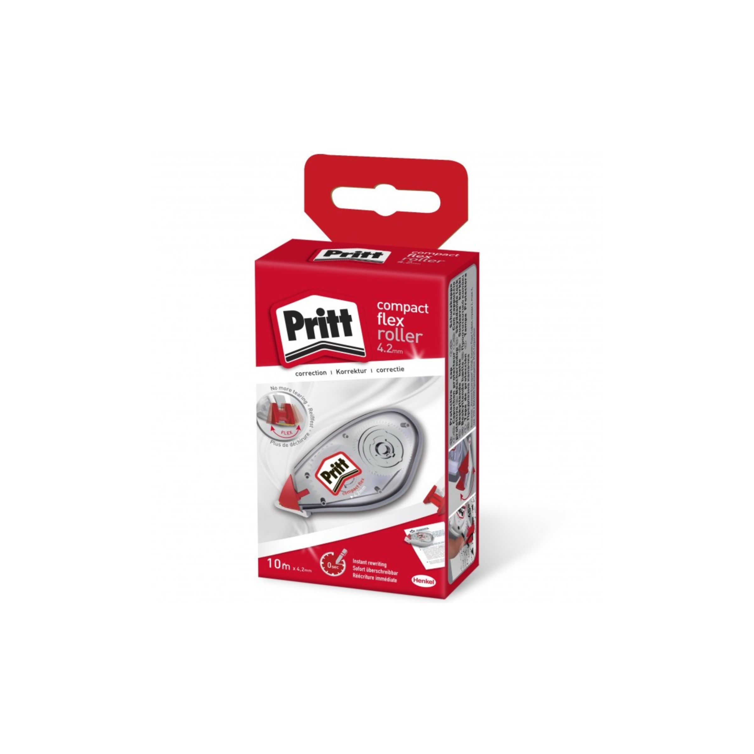I CORRETTORI ROLLER PRITT COMPACT FLEX SONO SINONIMO DI MANEGGEVOLEZZA GRAZIE ALLA LORO FORMA ERGONOMICA. L'INVOLUCRO TRASPARENTE PERMETTE DI VEDERE QUANDO IL NASTRO STA PER TERMINARE. E' DOTATO DI FRIZIONE TENDINASTRO. I CORRETTORI SONO REALIZZATI AL 50% CON PLASTICA RICICLATA E SONO RICICLABILI AL 100%.FORMATO COMPACT 4,2MM X 10MT (LUNGHEZZA NASTRO).