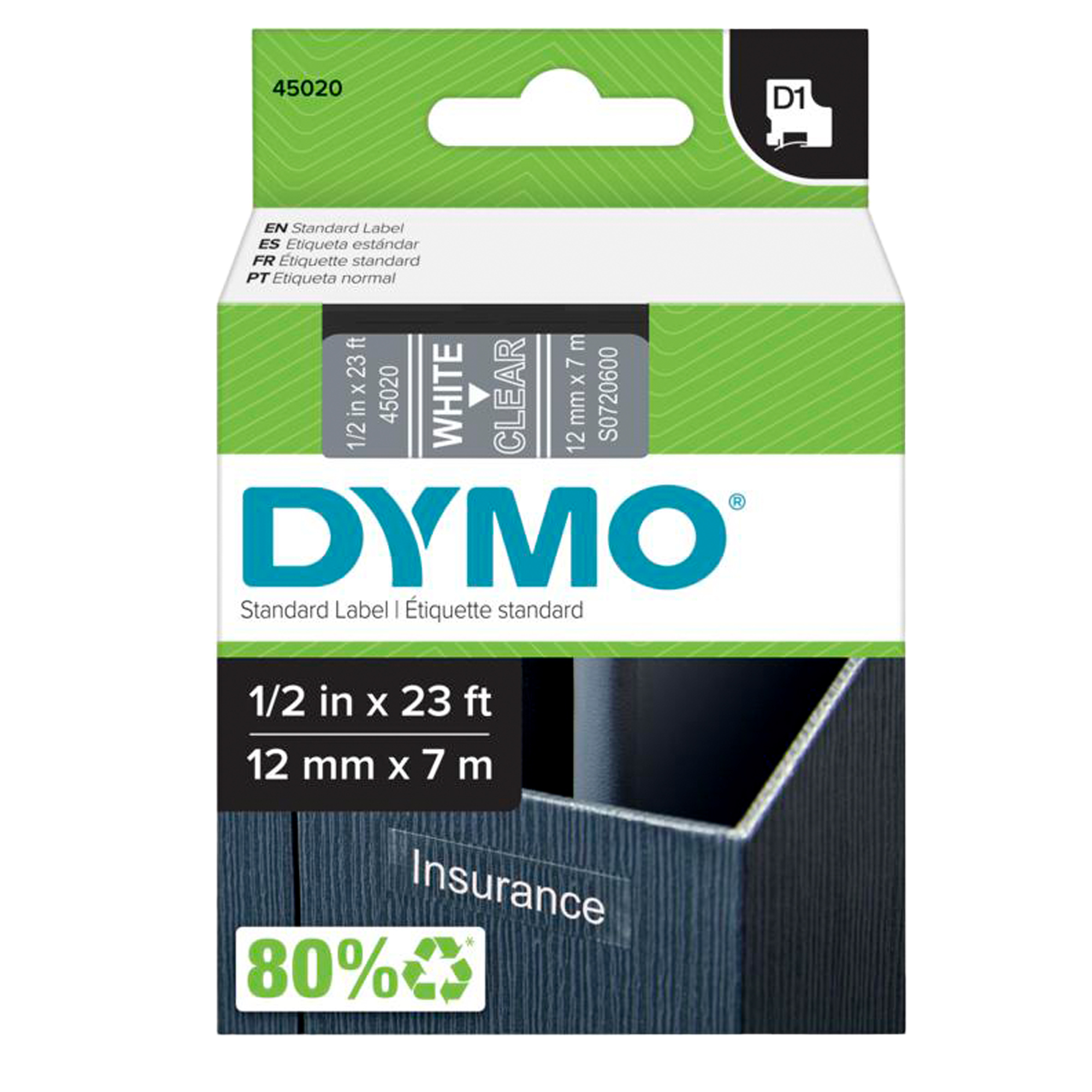 NASTRO DYMO TIPO D1 (12MMX7M) BIANCO/TRASPARENTE 450200