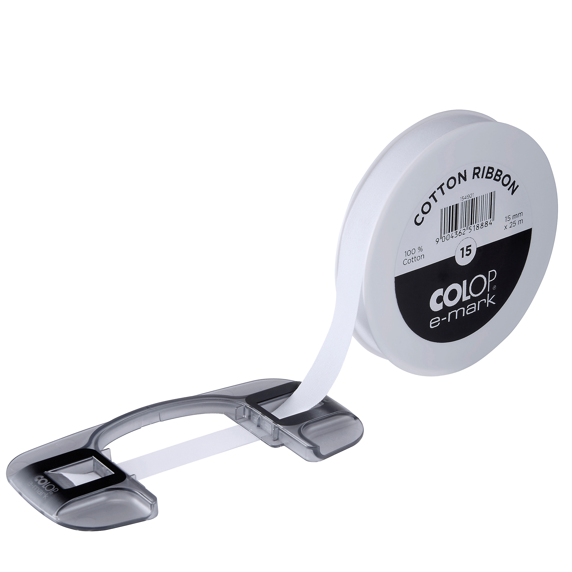 Nastro in cotone E-mark 15mmx25m bianco Colop