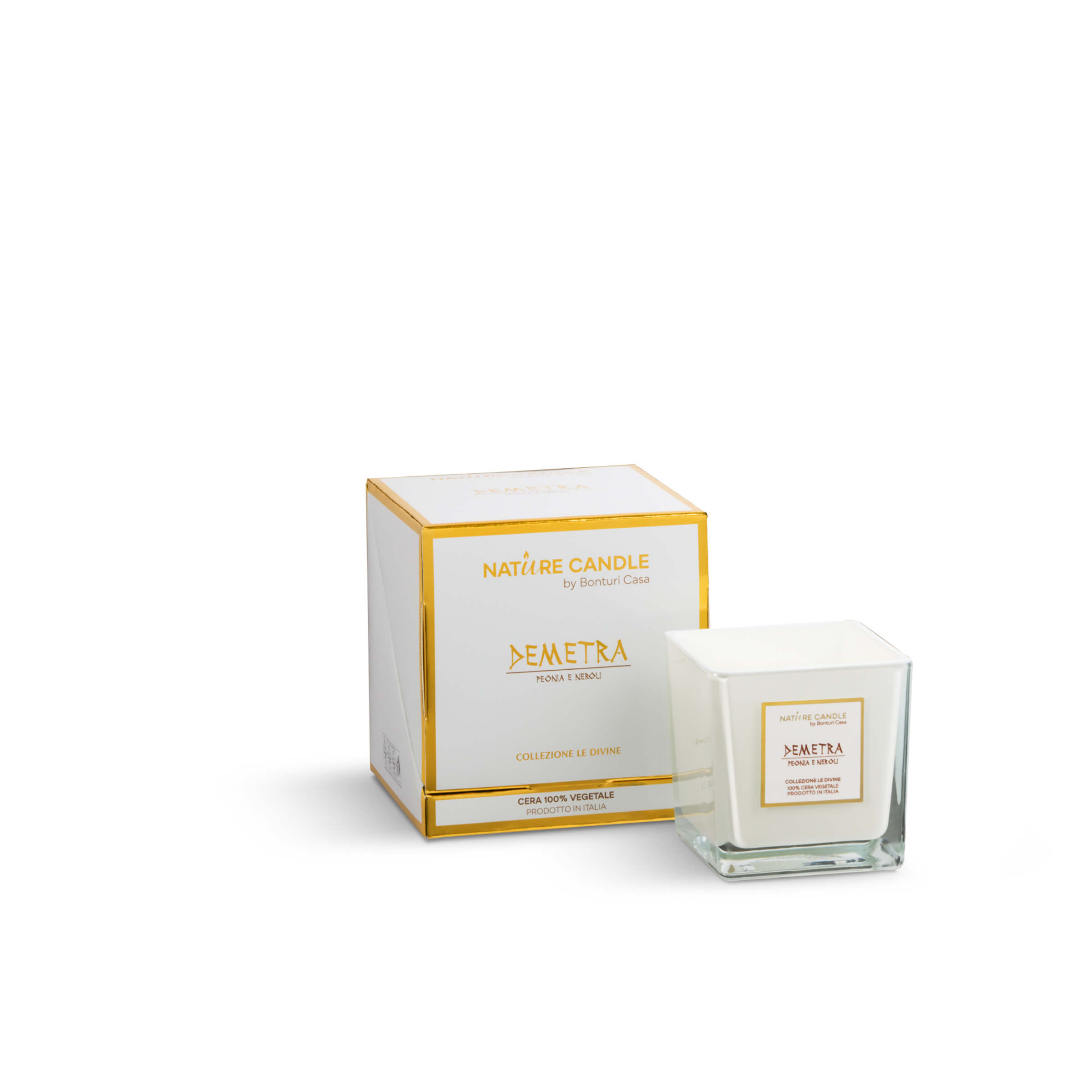 Immergiti nelle fragranze della natura con la candela profumata Demetra della linea Nature Candle by Bonturi Casa. Dedicata alla dea della natura e della fertilità, questa candela unisce la purezza della cera 100% vegetale alla ricchezza di una fragranza avvolgente, perfetta per creare un'atmosfera di serenità e armonia.