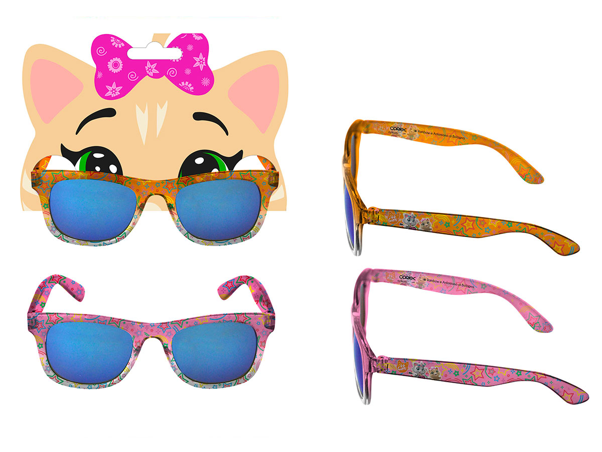 Gli occhiali da sole 44 Gatti sono l’accessorio perfetto per ogni piccolo fan del celebre cartone animato. Con uno stile vivace e colorato, questi occhiali offrono un mix ideale di protezione, divertimento e personalità, per accompagnare ogni avventura all’aria aperta in compagnia dei simpatici Buffycats.• Lenti Specchiate ad Alta Protezione: Le lenti riflettenti aiutano a schermare dalla luce intensa del sole, offrendo una visione più confortevole durante le giornate luminose. Perfette per proteggere gli occhi sensibili dei bambini.• Design Allegro e Personalizzato: La montatura è decorata con stelle, note musicali e grafiche dei personaggi più amati della serie 44 Gatti. Ogni dettaglio richiama l’universo musicale e gioioso dei Buffycats.• Struttura Leggera e Resistente: Ideali per il gioco e l’uso quotidiano, gli occhiali sono realizzati in plastica leggera ma robusta, garantendo una lunga durata anche in mani vivaci.• Colori Assortiti: Disponibili in due varianti – arancione e rosa – entrambe decorate con elementi grafici riconoscibili e distribuite in maniera casuale. Prodotto con licenza ufficiale Rainbow.• Perfetti per Tutte le Occasioni: Mare, parco giochi, passeggiate o semplici giornate in famiglia, questi occhiali sono pensati per essere funzionali e divertenti in ogni momento.Con gli occhiali da sole 44 Gatti ogni giornata al sole diventa un’occasione per vivere la musica, l’amicizia e l’allegria in puro stile Buffycats.Avvertenze: Non adatto a bambini di età inferiore ai 3 anni. Non è un dispositivo medico. Prodotto decorativo con protezione solare limitata. Si consiglia l’uso sotto supervisione di un adulto.