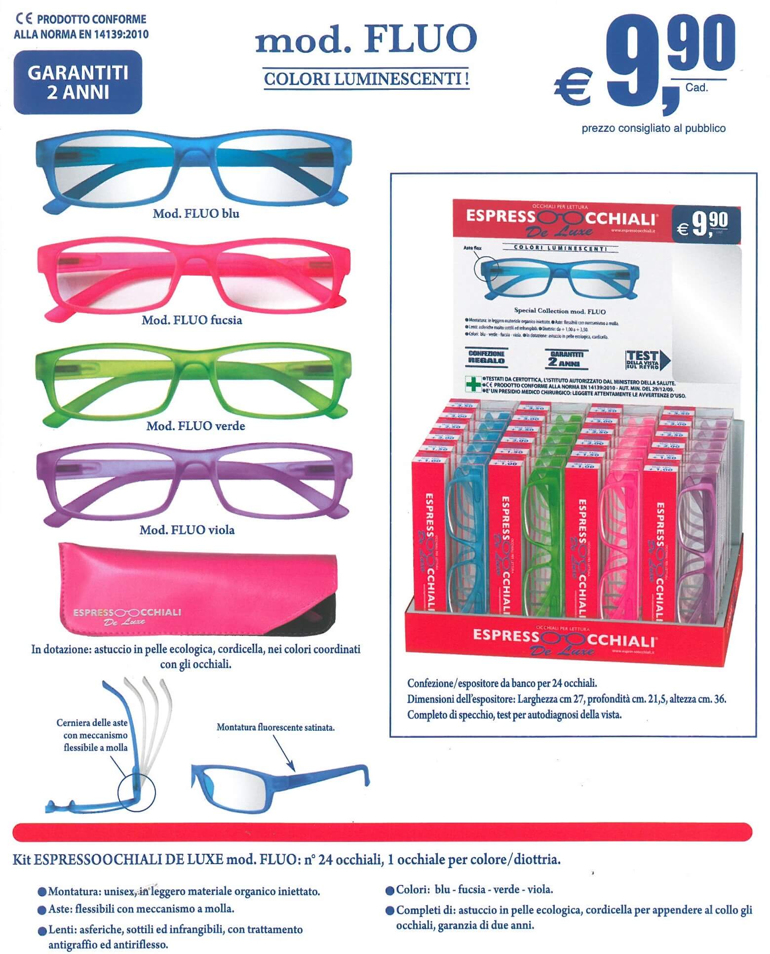 OCCHIALI DA LETTURA FLUO - 1.0 (4PZ)