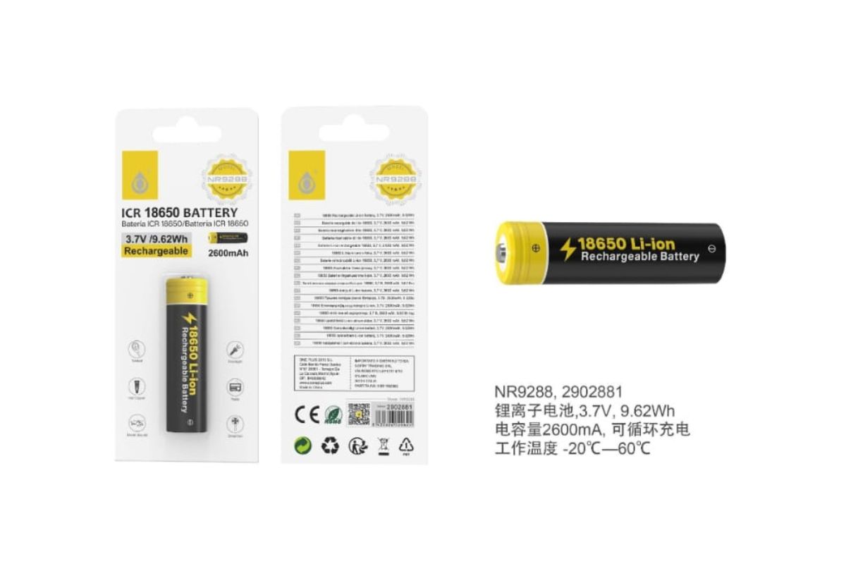 ONE PLUS BATTERIA AL LITIO RICARICABILE 2600 maH 3,7V modello 18650 - NR9288