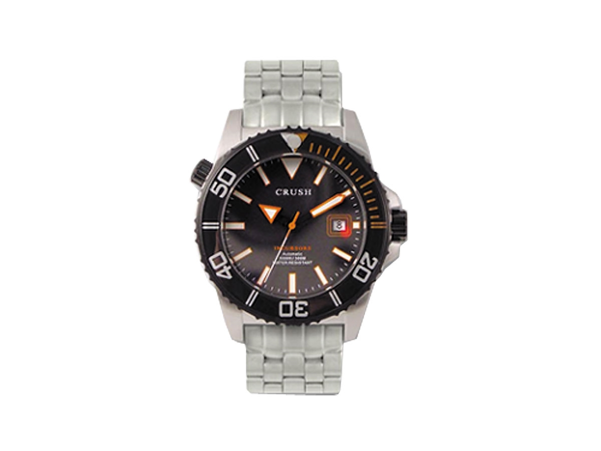 Crush OROLOGIO AUTOMATICO ELIO INCURSOREOrologio CRUSH Automatico Elio IncursoreAutomatico Svizzero 28-24Valvola Elio 300mVetro ZaffiroSuper LuminovaCassa acciaio antigraffioBracciale in acciaioChiusura viteLunetta girevoleDatarioSub 330 mt