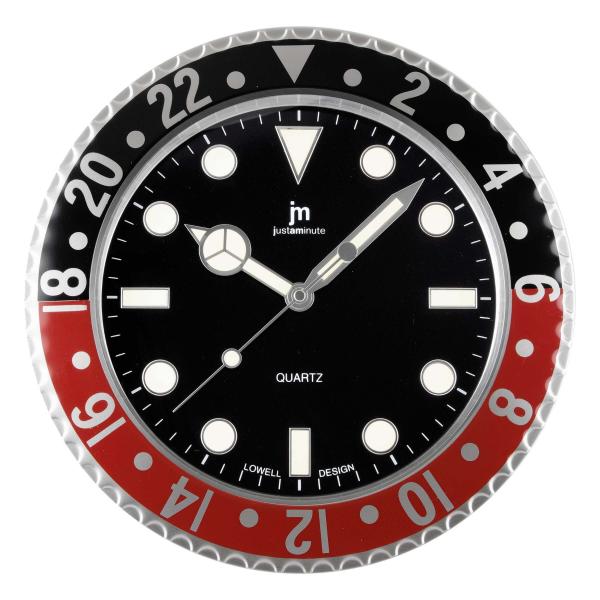 Orologio Da Parete Diver GMT Style al Quarzo D.34 cm Acciaio Nero e Rosso Lowell - 14936R