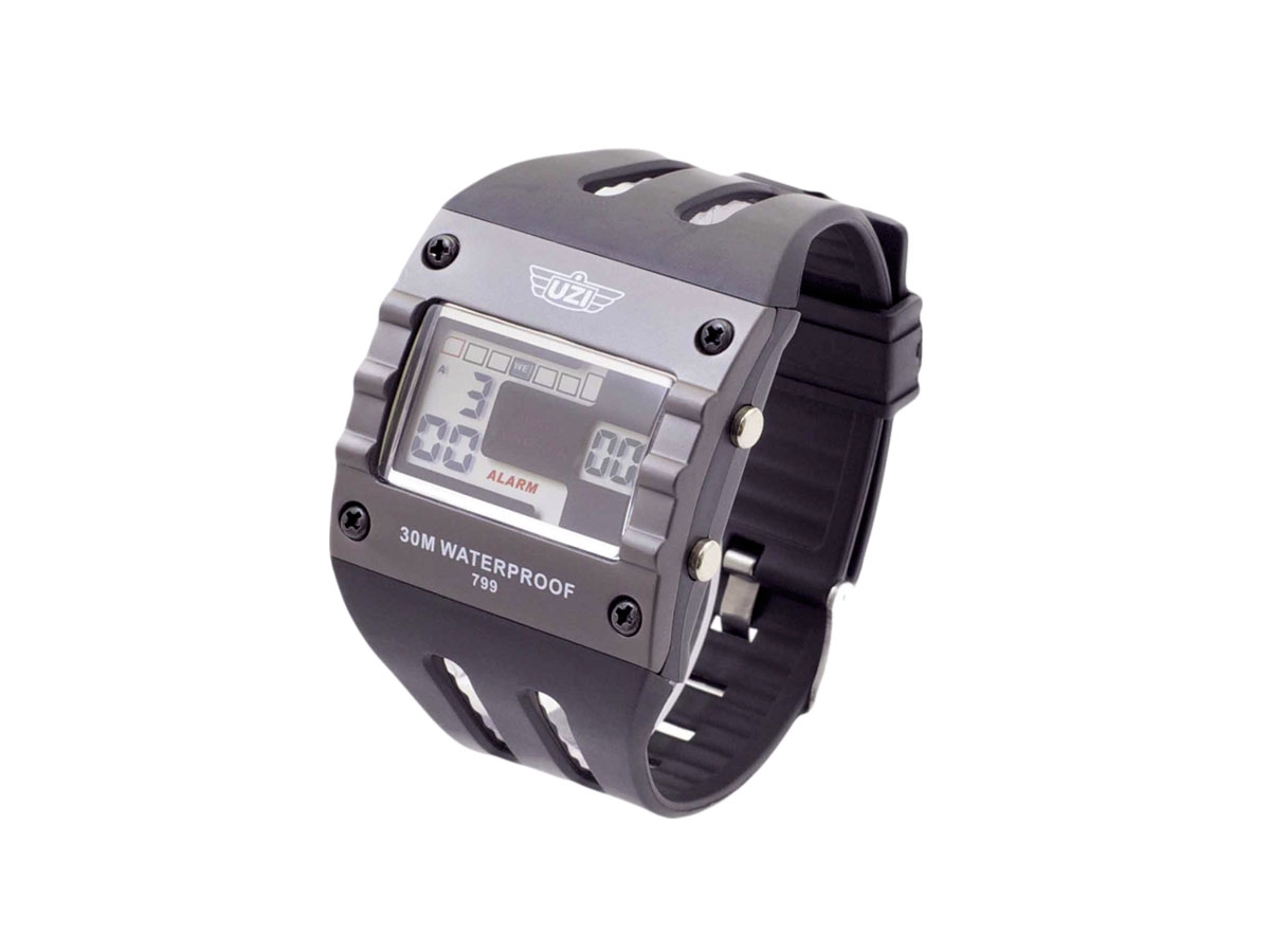 - Cassa in Stainless St. - Water Resistant 30m - Retro bagliore - 3 ATM - Datario - Sveglia - 20 ATM - Ora standard o militare - Cinturino in gomma