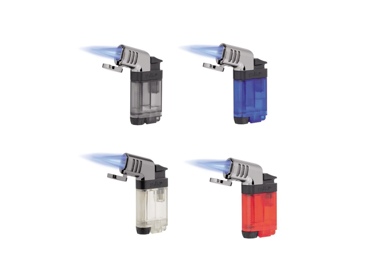 L'accendino Palió Pistola è dotato di una potente fiamma angolata a doppio getto. Il suo corpo si adatta perfettamente alla mano ed è abbinato ad un ampio grilletto per comfort e controllo. E' dotato di un grande serbatoio traslucido con capacità sufficiente per accendere fino a 150 sigari tra un rifornimento e l'altro. La grande rotella di regolazione della fiamma, facile da usare, è un'ulteriore caratteristica ergonomica che consente all'utente di trovare senza sforzo l'altezza della fiamma desiderata. E' testato in alta quota fino a 12.000 piedi (3,658 m).