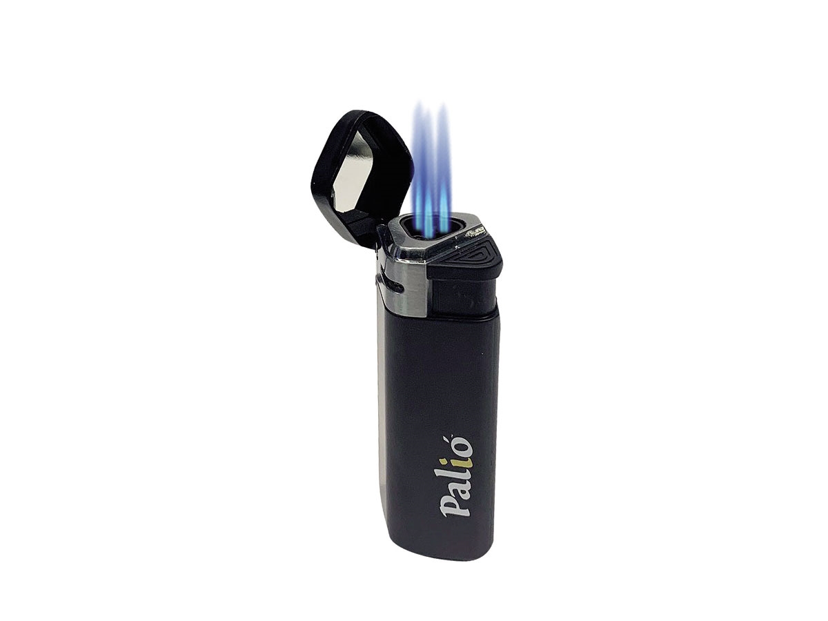Compatto, leggero e dotato di tre potenti fiamme, l'accendino Palio Treo Triple Jet è caratterizzato da una fiamma triangolare angolata con accensione a pulsante. E' dotato di un serbatoio extra-large e di un regolatore di fiamma ed è antivento. E' testato in alta quota fino a 12.000 piedi (3,658 m).