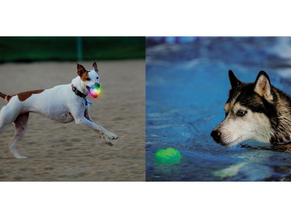 La GlowStreak Wild Led Ball è una robusta palla di gomma che ad ogni rimbalzo cambia direzione e colore mantenendo il divertimento acceso e luminoso. Il guscio di gomma circonda un nucleo interno protetto contenente un innovativo modulo attivato dal movimento con LED Disc-O che cambiano colore. Il nucleo contiene anche 2 batterie CR2032 facilmente sostituibili e di lunga durata per un massimo di 35 ore di gioco. GlowStreak si spegne automaticamente dopo 10 minuti di inattività per garantire che il divertimento non vada sprecato. Ideale per le razze più grandi, questa palla modellata è antiurto, impermeabile, galleggiante, adatta ai morsi e resistente alla bava.