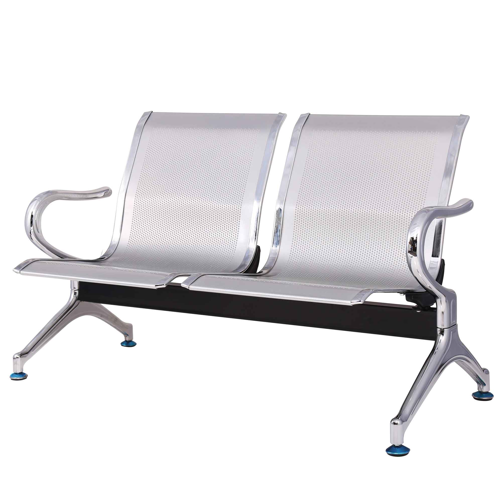 PANCA PER SALA D'ATTESA IN ACCIAIO MICROFORATO CON TRATTAMENTO ANTIRUGGINE E VERNICIATURA ELETTROSTATICA. SPESSORE LAMIERA 1,5MM. PROFILI, GAMBE E BRACCIOLI IN ACCIAIO CROMATO.