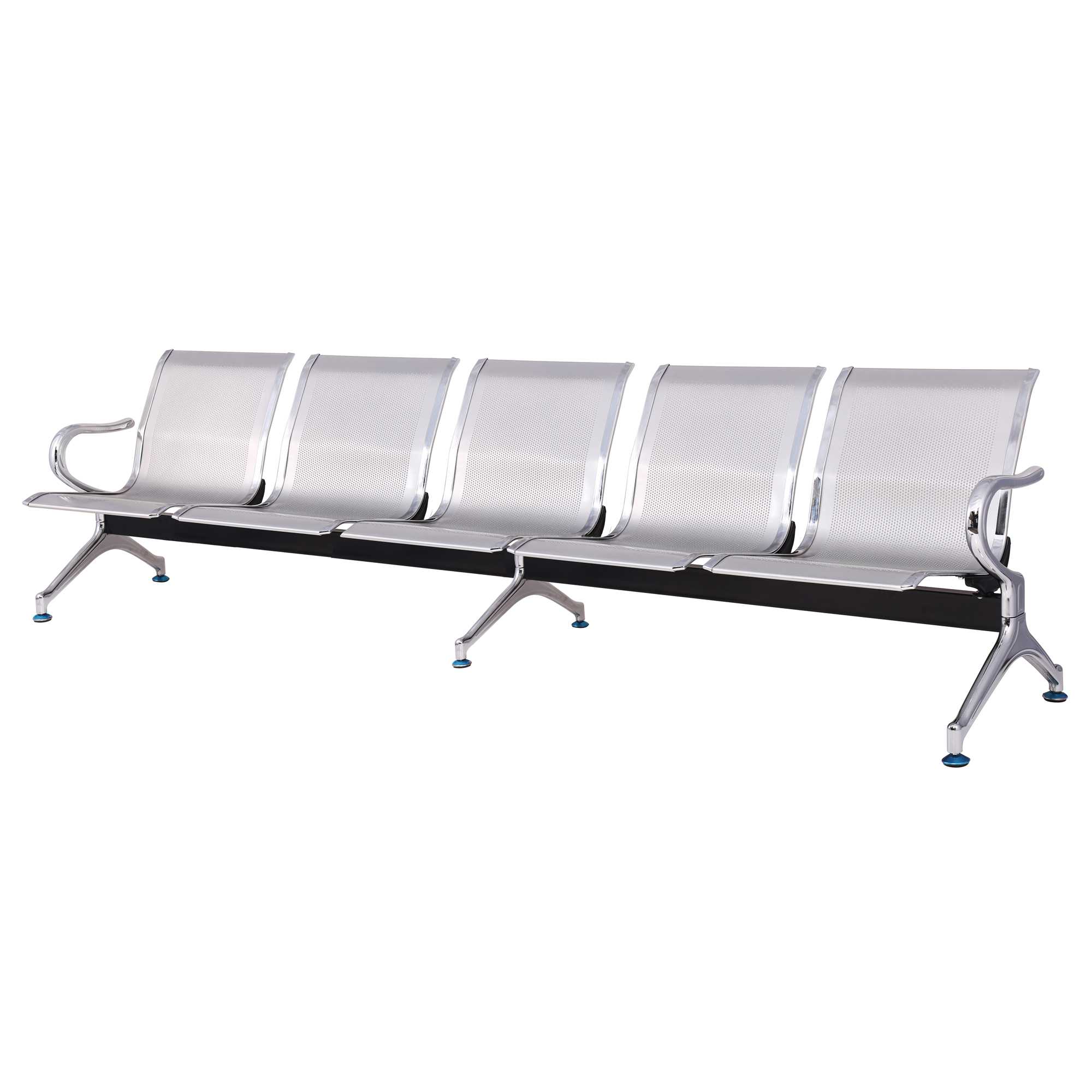 PANCA PER SALA D'ATTESA IN ACCIAIO MICROFORATO CON TRATTAMENTO ANTIRUGGINE E VERNICIATURA ELETTROSTATICA. SPESSORE LAMIERA 1,5MM. PROFILI, GAMBE E BRACCIOLI IN ACCIAIO CROMATO.