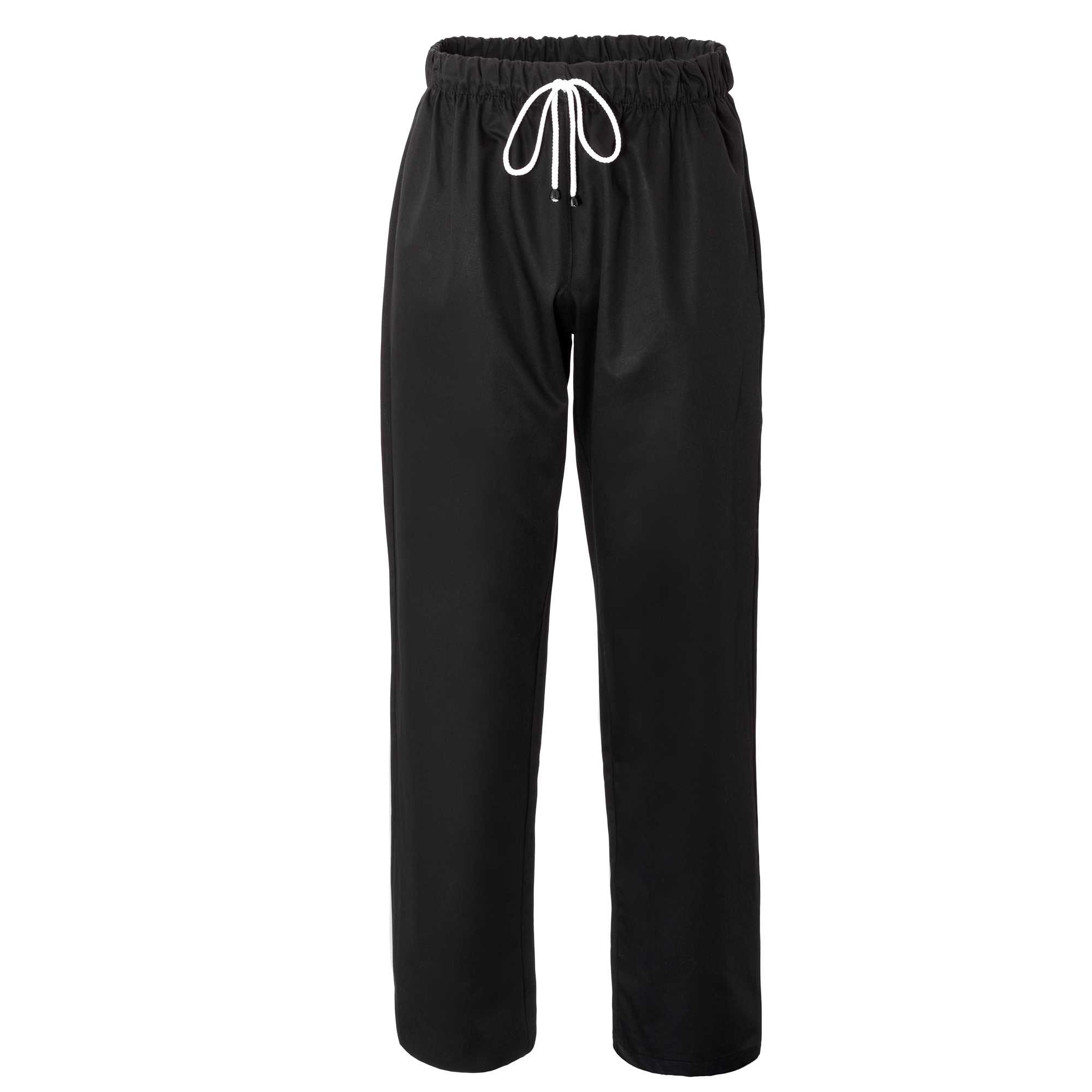 PANTALONE DA CUOCO 65% POLIESTERE, 35% COTONE. TAGLIE DISPONIBILI: DA XS - 5XL. SLIM FIT. DETTAGLI: 2 TASCHE, 1 TASCA SUL RETRO, ELASTICO E COULISSE
