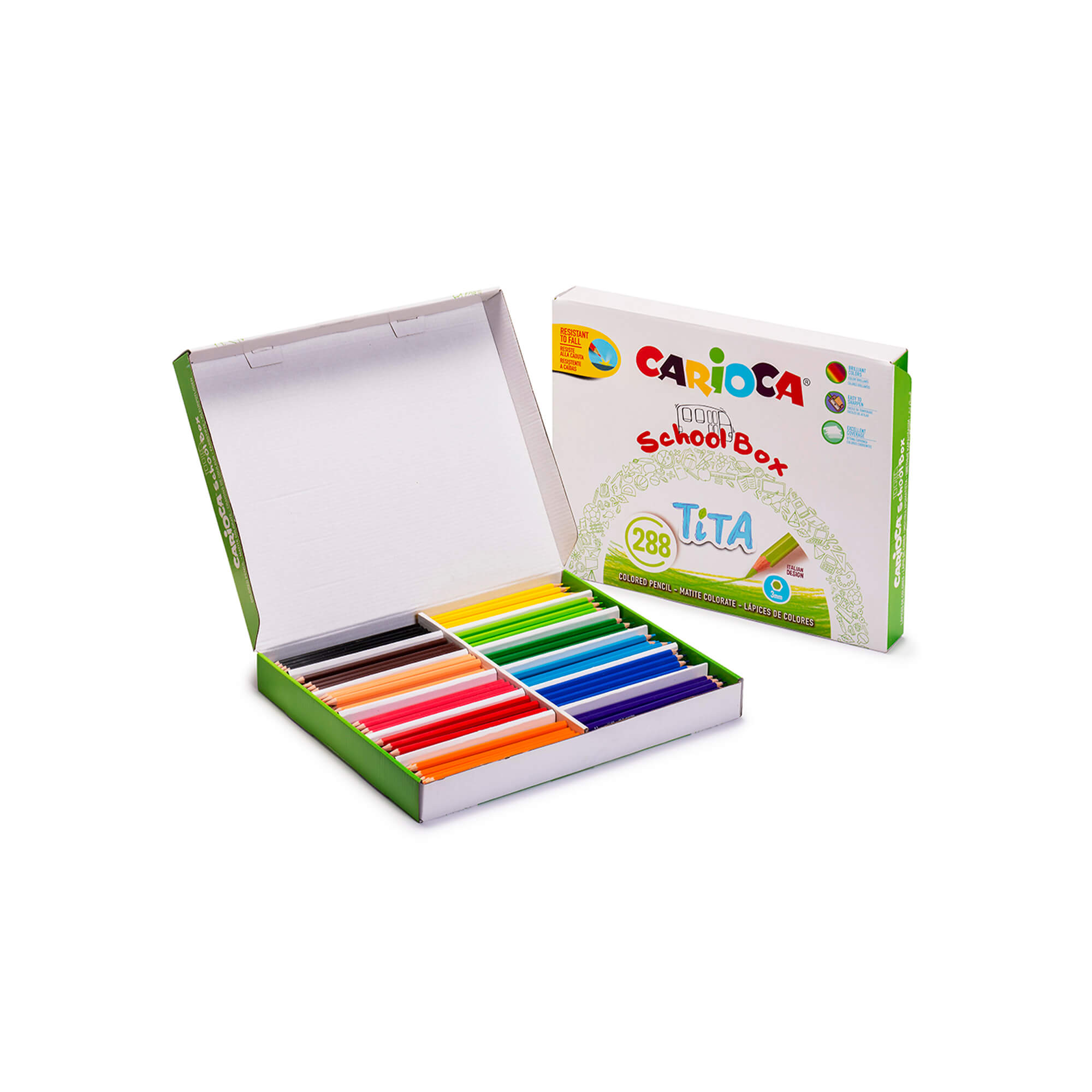 La school box Carioca Tita da 288 pezzi è una soluzione pratica e completa, pensata per ambienti scolastici, attività educative e laboratori creativi. Ogni matita è realizzata in resina resistente, con un corpo esagonale che garantisce una presa stabile e confortevole. I colori sono vivaci, coprenti e facili da lavare, ideali per stimolare la creatività dei bambini e facilitare il lavoro degli insegnanti.Le matite sono dotate di mina sicura da 3 mm, progettata per offrire un tratto morbido e preciso. Grazie alla resina, in caso di rottura non si creano schegge, rendendo il prodotto più sicuro rispetto alle tradizionali matite in legno. Il set da 288 pezzi è suddiviso in colori assortiti e organizzato in modo ordinato all’interno della confezione, facilitando la distribuzione e l’utilizzo in classe o in gruppo.• Scatola da 288 pezzi: il set contiene 288 matite colorate in resina, assortite in 12 colori vivaci, pronte all’uso e disposte ordinatamente nella confezione.• Corpo esagonale: la forma a sei lati consente una presa salda e confortevole, migliorando l’ergonomia anche per i più piccoli.• Colori brillanti e lavabili: offrono una resa intensa, uniforme e facilmente rimovibile dalla maggior parte dei tessuti.• Mina da 3 mm resistente: garantisce una scrittura fluida, precisa e adatta a un uso prolungato senza spezzarsi.• Struttura in resina anti-scheggia: le matite non si scheggiano in caso di rottura, aumentando la sicurezza durante l’utilizzo.• Facile da temperare: la resina permette un’affilatura semplice con qualsiasi temperamatite standard.• Conforme alle normative di sicurezza: prodotto non adatto ai bambini di età inferiore ai 3 anni. Contiene piccole parti staccabili che possono causare rischio di soffocamento.La school box Carioca Tita da 288 pezzi rappresenta una scelta affidabile per scuole, centri educativi e famiglie che cercano qualità, sicurezza e organizzazione in un’unica soluzione.