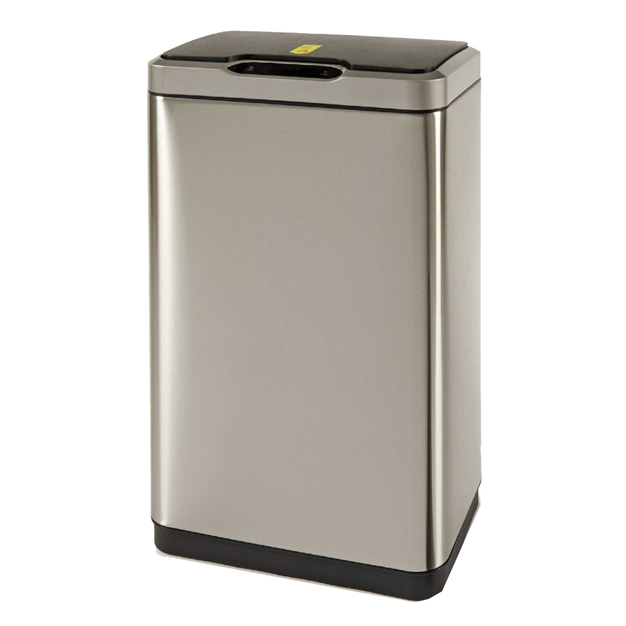 PATTUMIERA IN ACCIAIO INOX CON FINITURA SATINATA E SECCHIO PORTASACCO ESTRAIBILE E LAVABILE. SENSORE PER APERTURA AUTOMATICA E CHIUSURA RALLENTATA. IL PASSAGGIO DI UN OGGETTO SOPRA IL SENSORE AD UNA DISTANZA MASSIMA DI 20CM FA APRIRE AUTOMATICAMENTE IL COPERCHIO CHE SI RICHIUDE 5 SECONDI DOPO CHE L'OGGETTO SI E' SPOSTATO DAL RAGGIO DI AZIONE DEL SENSORE. FUNZIONA CON 6 BATTERIE AA 1,5V (NON INCLUSE). DIMENSIONI: L37,5 X P25 X H62,5CM - 30LT.