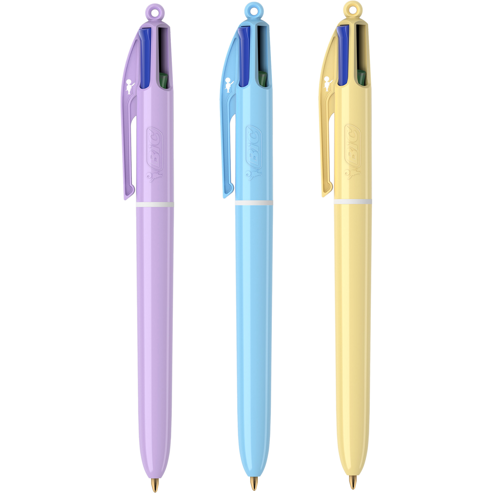 Espositore con assortimento di 108 penne a sfera 4 Colours: 12 Multifunzione 3+1 HB con portamine, 24 Shine metallizzate assortite, 24 Pastel con fusti in 3 colori assortiti, 24 Fun con inchiostri fun e 24 Original con il classico fusto azzurro.