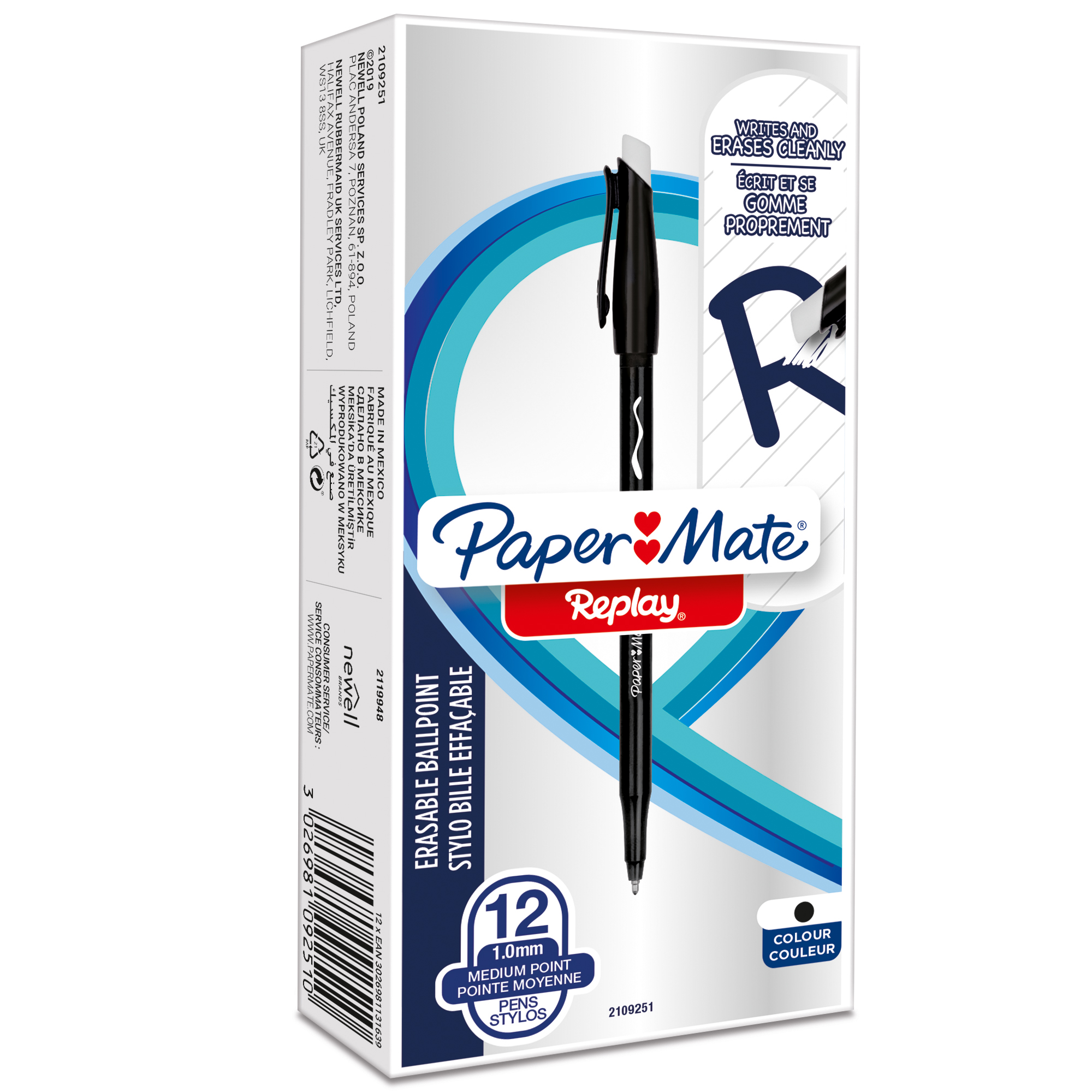 12 Penna sfera Replay 40o anniversario - inchiostro cancellabile - punta 1 mm - nero - Papermate