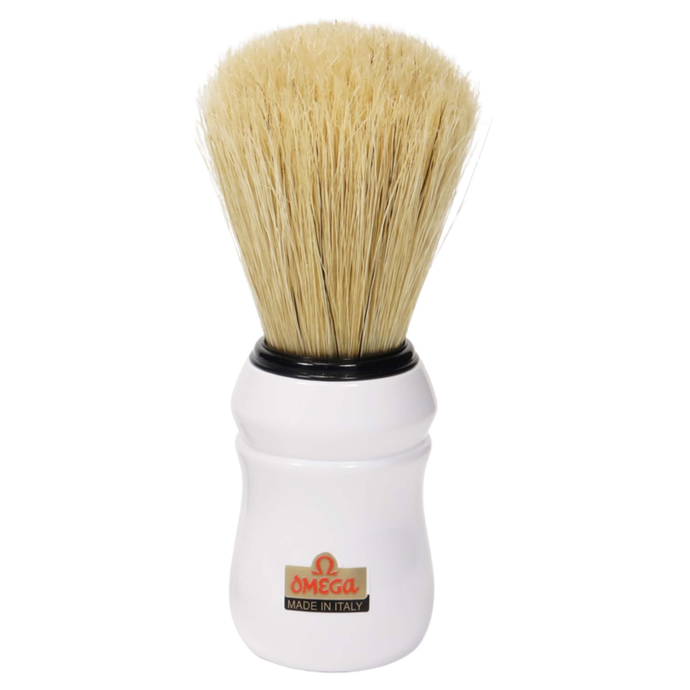 Scopri il piacere della rasatura tradizionale con il pennello da barba Omega 10049. Realizzato artigianalmente in Italia, questo pennello unisce l’eccellenza dei materiali alla qualità della lavorazione, offrendo un’esperienza di rasatura unica e confortevole.• Setola Naturale di Alta Qualità: Il ciuffo del pennello è realizzato in pura setola naturale, perfetta per ammorbidire la pelle e sollevare i peli per una rasatura più precisa e confortevole.• Manico in ABS Robusto ed Elegante: Il manico, disponibile nei colori nero, rosso e bianco, è realizzato in ABS, un materiale resistente e leggero che garantisce una presa ergonomica e sicura durante l’uso.• Accessori Completi per una Rasatura Professionale: Il set include un supporto in metallo cromato per mantenere il pennello in ordine e farlo asciugare correttamente, oltre a una ciotola in ABS con diametro di 89 mm, ideale per montare facilmente la schiuma.• Dimensioni Ideali: Con un'altezza totale di 164 mm e una dimensione del pennello di 128 mm, questo pennello offre un perfetto equilibrio tra maneggevolezza e comfort.• Artigianato Italiano: Ogni pennello Omega è realizzato a mano in Italia, e le leggere variazioni nelle dimensioni e nei dettagli sono testimonianza dell’alta qualità artigianale e della naturalezza dei materiali utilizzati.Perfetto per gli amanti della rasatura tradizionale, il pennello da barba Omega 10049 è un accessorio elegante e funzionale, pensato per garantire una rasatura precisa e confortevole. Regala un tocco di stile e qualità alla tua routine di rasatura quotidiana.