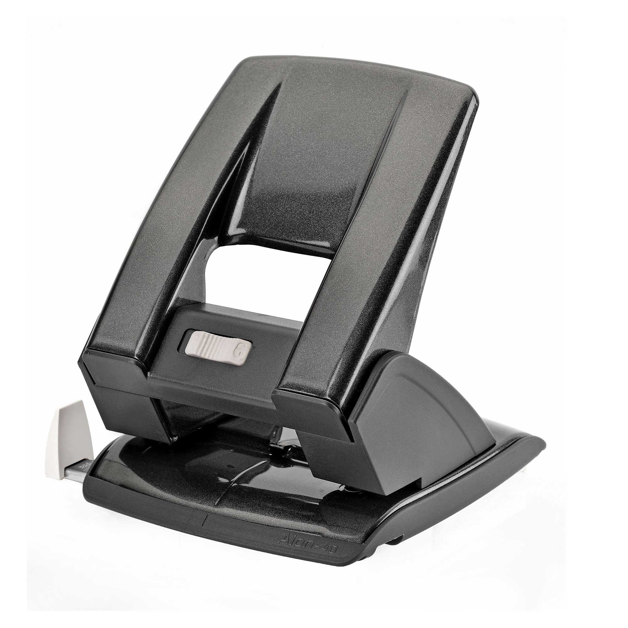 PERFORATORE A 2 FORI IN METALLO CON GUIDA REGOLABILE ED INSERTI IN ABS.DI ROBUSTA COSTRUZIONE, CONSENTE DI PERFORARE FINO A 40 FOGLI CON IL MINIMO SFORZO.IL MECCANISMO DI SICUREZZA E SALVA SPAZIO (BLOCCO/SBLOCCO IMPUGNATURA) E' PRATICO E VELOCE GRAZIE AL PULSANTE PREPOSTO POSIZIONATO SUL FRONTE DELL‘IMPUGNATURA.IL VANO RACCOGLICORIANDOLI E' FACILMENTE SVUOTABILE, SENZA RIMUOVERLO, ATTRAVERSO LA PRATICA APERTURA FRONTALE DEDICATA.