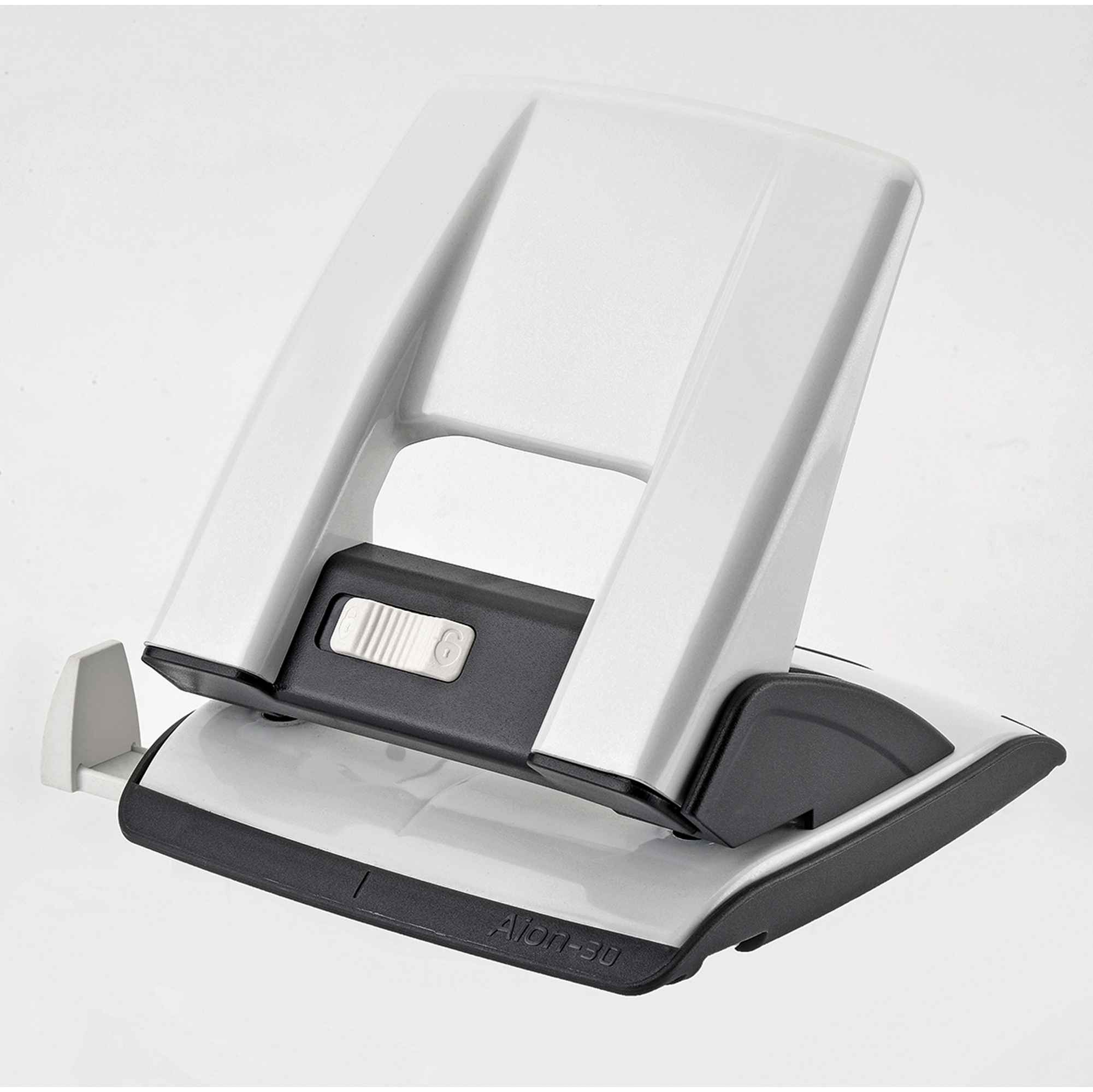 PERFORATORE A 2 FORI IN METALLO CON GUIDA REGOLABILE ED INSERTI IN ABS. DI ROBUSTA COSTRUZIONE, CONSENTE DI PERFORARE FI NO A 30 FOGLI CON IL MINIMO SFORZO.DOTATO DI MECCANISMO DI SICUREZZA E SALVA SPAZIO (BLOCCO/SBLOCCO IMPUGNATURA). PRATICO E VELOCE GRAZIE AL PULSANTE PREPOSTO POSIZIONATO SUL FRONTE DELL‘IMPUGNATURA.