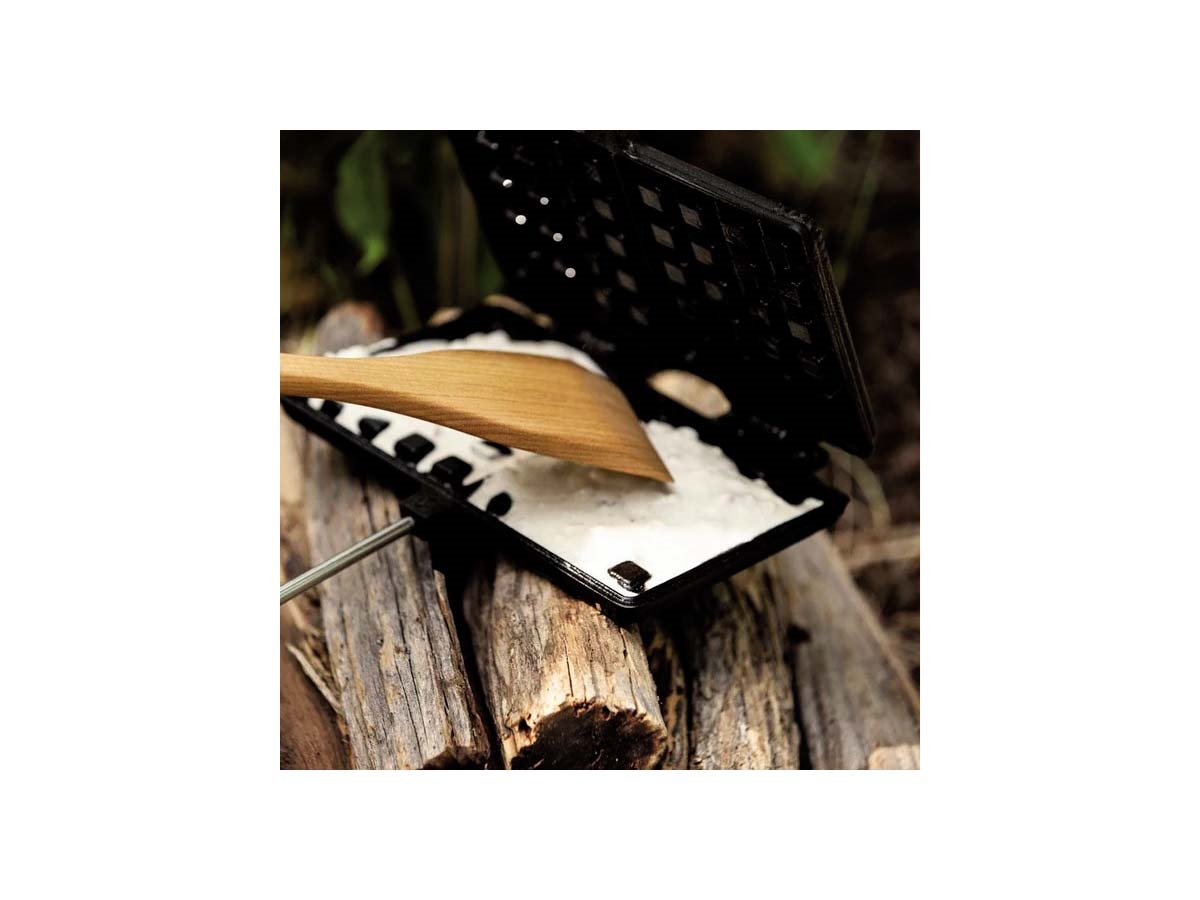 -Manici in legno comodi da impugnare- Lunga asta garantisce una distanza sufficiente dalla fonte di calore - Adatta per due waffle da 9 x 11 cm - Gancio di bloccaggio
