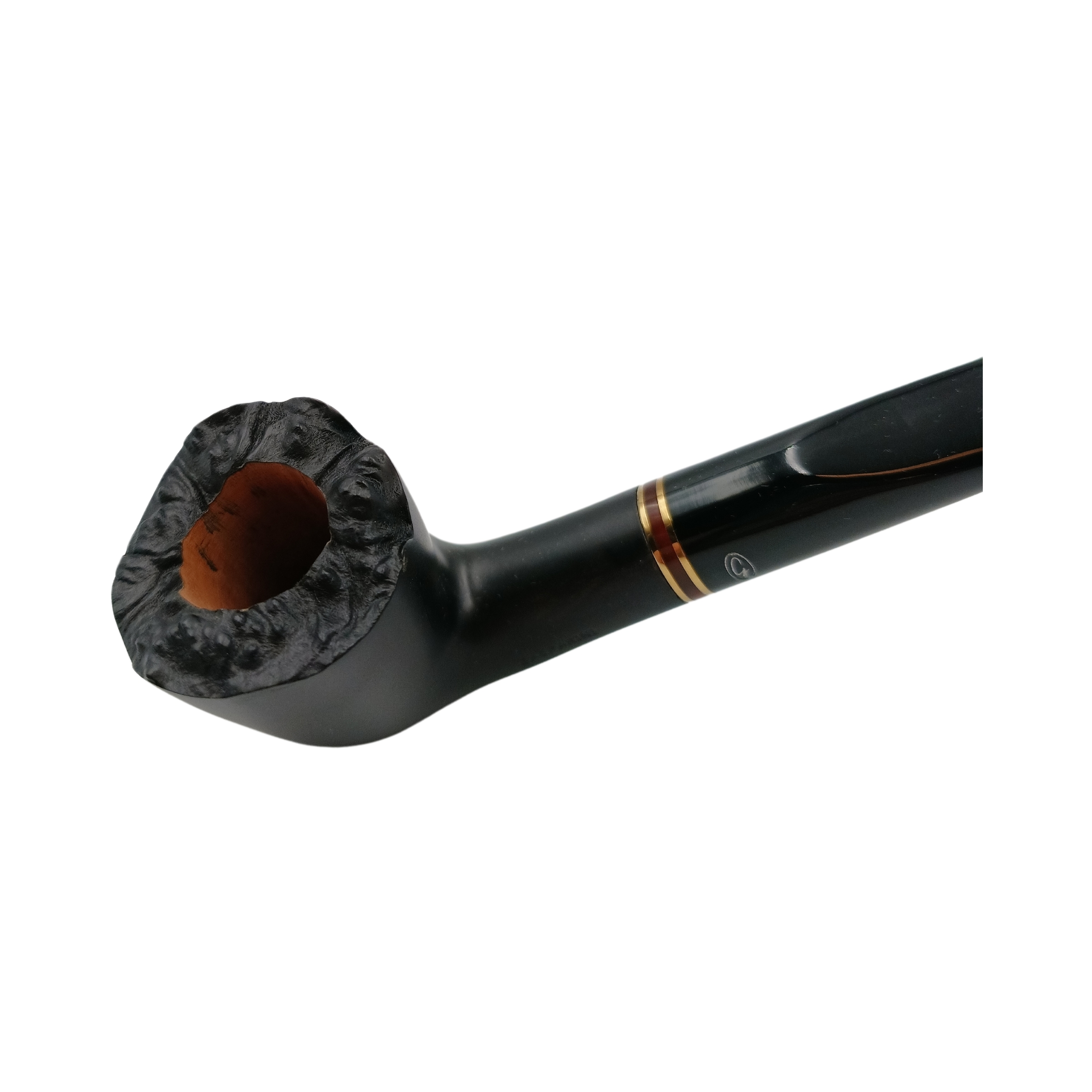 La Pipa Gasparini Fatta a Mano Bent Dublin rappresenta un'autentica celebrazione del design e della funzionalità. Questa pipa si distingue per le sue due verette oro che impreziosiscono l'insieme con un tocco di lusso e per l'inserto dallo splendido effetto madreperla, che cattura e riflette la luce, offrendo un contrasto affascinante con il nero opaco della radica. La finitura opaca della superficie non solo dona un'aspetto contemporaneo e sofisticato, ma accentua anche la sensazione tattile unica che solo una pipa rusticata può fornire.La forma Bent Dublin, con le sue linee pulite e l'angolo preciso, è pensata per adattarsi comodamente alla mano del fumatore, mentre il bocchino curvo promette una fumata rilassante e senza sforzo. Ogni pipa è un inno alla tradizione artigianale italiana, con misure studiate per assicurare la massima soddisfazione e un fumo di puro piacere.Caratteristiche Tecniche:• Materiale: Radica• Forma: Bent Dublin• Colore: Nero Opaco• Finissaggio: Opaco• Bocchino: Curvo• Lunghezza Totale: 146 mm• Profondità Fornello: 42 mm• Diametro Interno Fornello: 20 mm• Diametro Esterno Fornello: 40 mm• Filtro: 9 mm• Peso: 60,30 gr• Origine: Artigianato italiano di alta qualità - Pipe Gasparini!! ATTENZIONE !!Prodotto artigianale venature e colore potrebbero differire in base alle forniture. Utilizziamo immagini di prodotti fisici in alta definizione per il maggiore dettaglio possibile.La pipa viene fornita con sacchetto Gasprini e confezione semi rigida in cartone, rendendola un regalo ideale per gli appassionati o un'esclusiva aggiunta alla propria collezione di pipe di pregio.