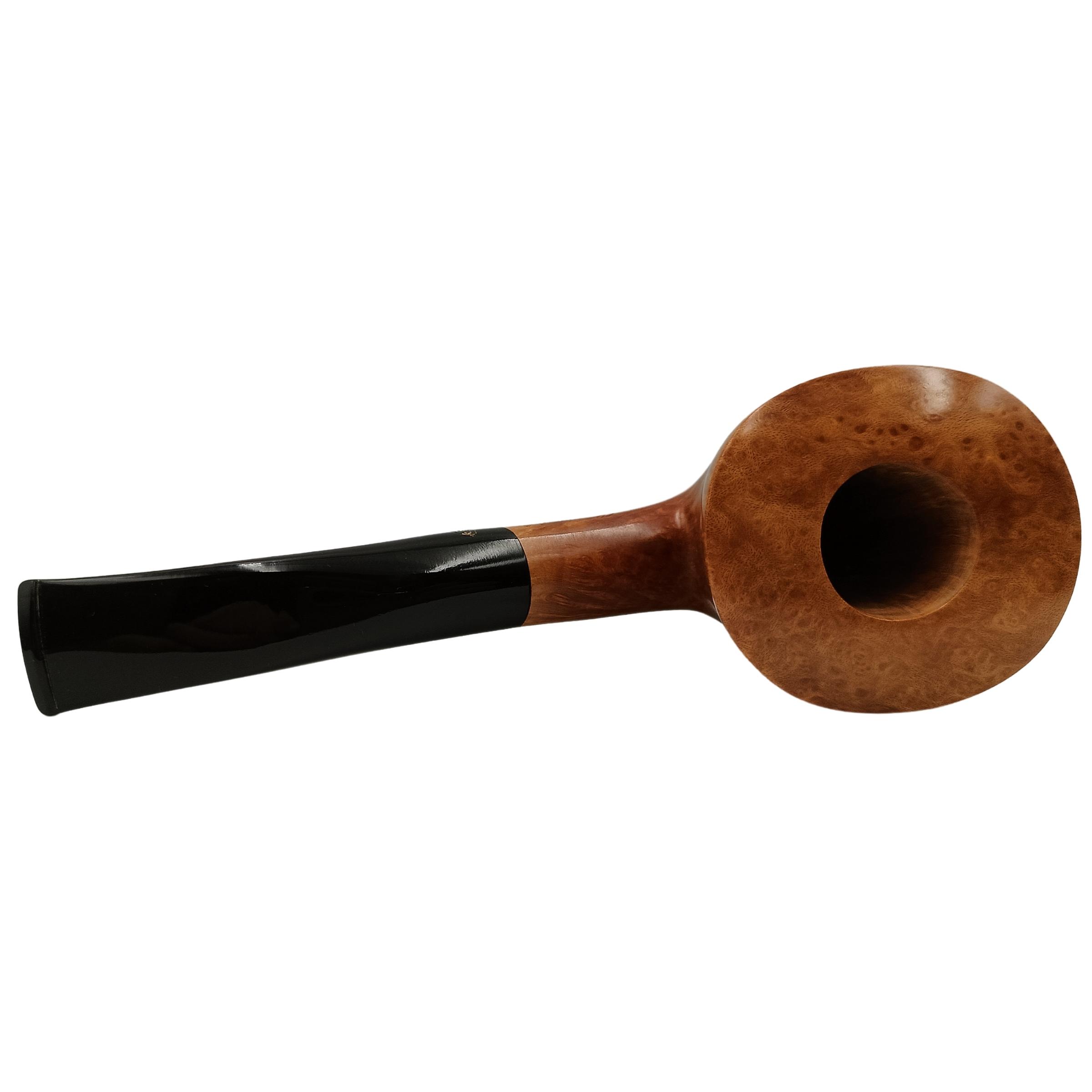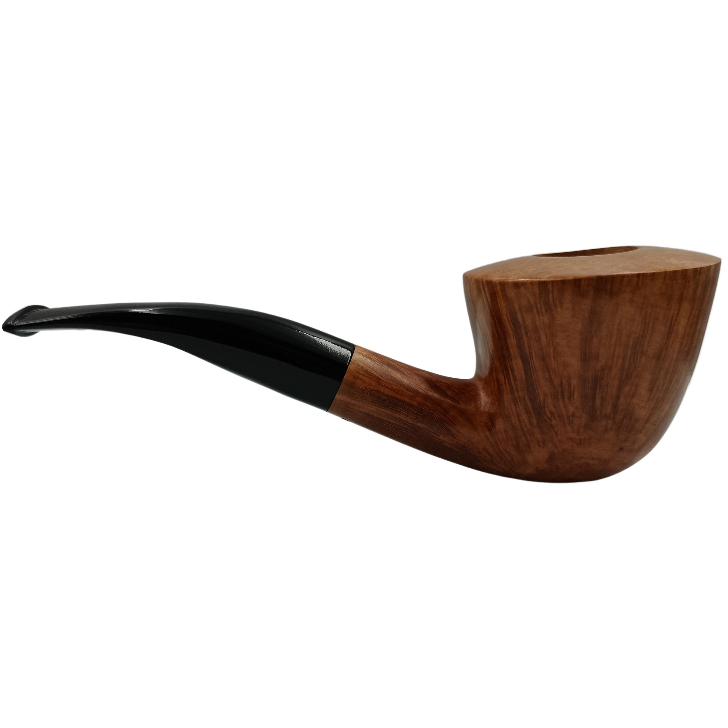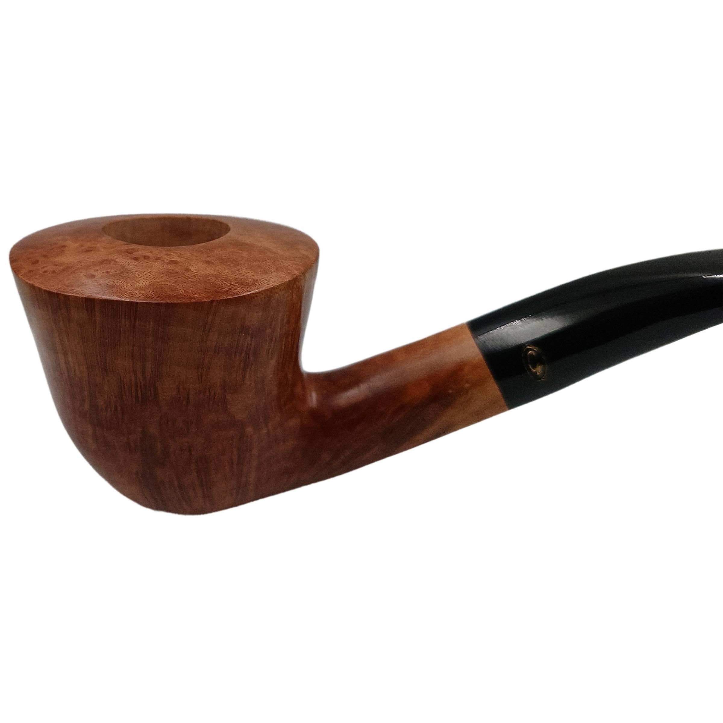 Scopri la purezza estetica e la tradizione piparia italiana con la Pipa Gasparini Half Bent Dublin Fatta a Mano, un modello realizzato con radica Fine Bruyere accuratamente selezionata e lavorata artigianalmente per esprimere tutto il fascino del legno naturale. La forma Dublin, con il fornello che si allarga verso l'alto e la leggera curva del cannello, garantisce un'ottima dispersione del calore e una fumata intensa ma equilibrata.La finitura liscia mette in risalto la bellezza della radica naturale cerata, con venature leggere e omogenee che conferiscono carattere senza risultare eccessive. Il tono chiaro, tipico della lavorazione naturale, dona alla pipa un'eleganza sobria e raffinata, perfetta per chi apprezza una resa visiva genuina e autentica.Il bocchino curvo in plexiglas nero offre un'ottima ergonomia e una postura confortevole, mentre l'alloggiamento per filtro da 9 mm garantisce una fumata asciutta e pulita, trattenendo umidità e impurità senza alterare l'aroma del tabacco.Caratteristiche Tecniche:• Materiale: Radica Fine Bruyere• Forma: Half Bent Dublin• Colore: Naturale cerato• Finissaggio: Liscio• Bocchino: Curvo in plexiglas nero per filtro 9 mm• Lunghezza totale: 152 mm• Profondità fornello: 46 mm• Diametro interno fornello: 22 mm• Diametro esterno fornello: 56 mm• Filtro: 9 mm• Peso: 74.45 g• Origine: Artigianato italiano di alta qualità Pipe GaspariniQuesta pipa rappresenta l'incontro perfetto tra estetica naturale, qualità artigianale ed equilibrio strutturale. La radica stagionata e la forma Dublin garantiscono una fumata intensa e aromatica, mentre la linea pulita e il profilo slanciato la rendono ideale sia per collezionisti sia per fumatori esperti alla ricerca di un modello ricercato e ben rifinito.ATTENZIONEEssendo un prodotto artigianale, venature e tonalità possono variare in base alla radica utilizzata. Le immagini pubblicate sono fotografie reali in alta definizione per garantire la massima fedeltà visiva.La pipa è fornita con sacchetto Gasparini e confezione semirigida in cartone.