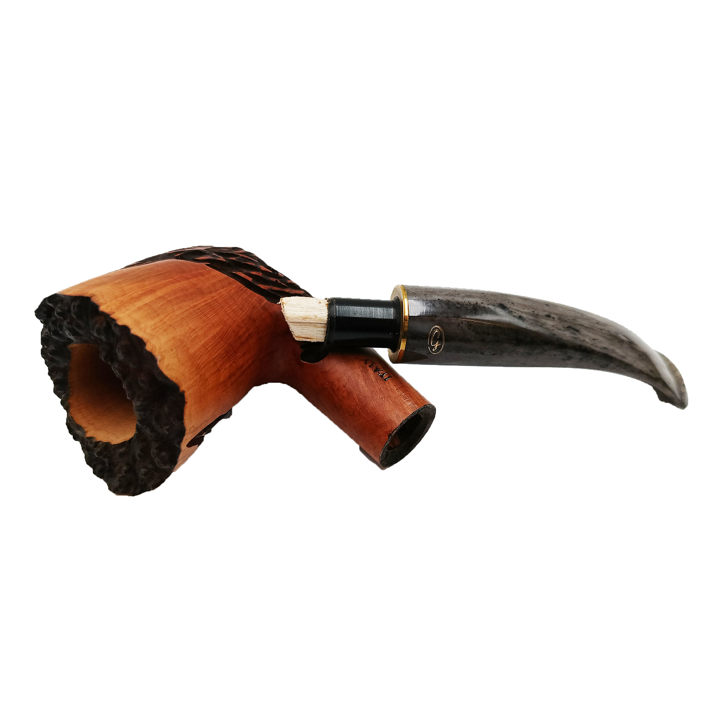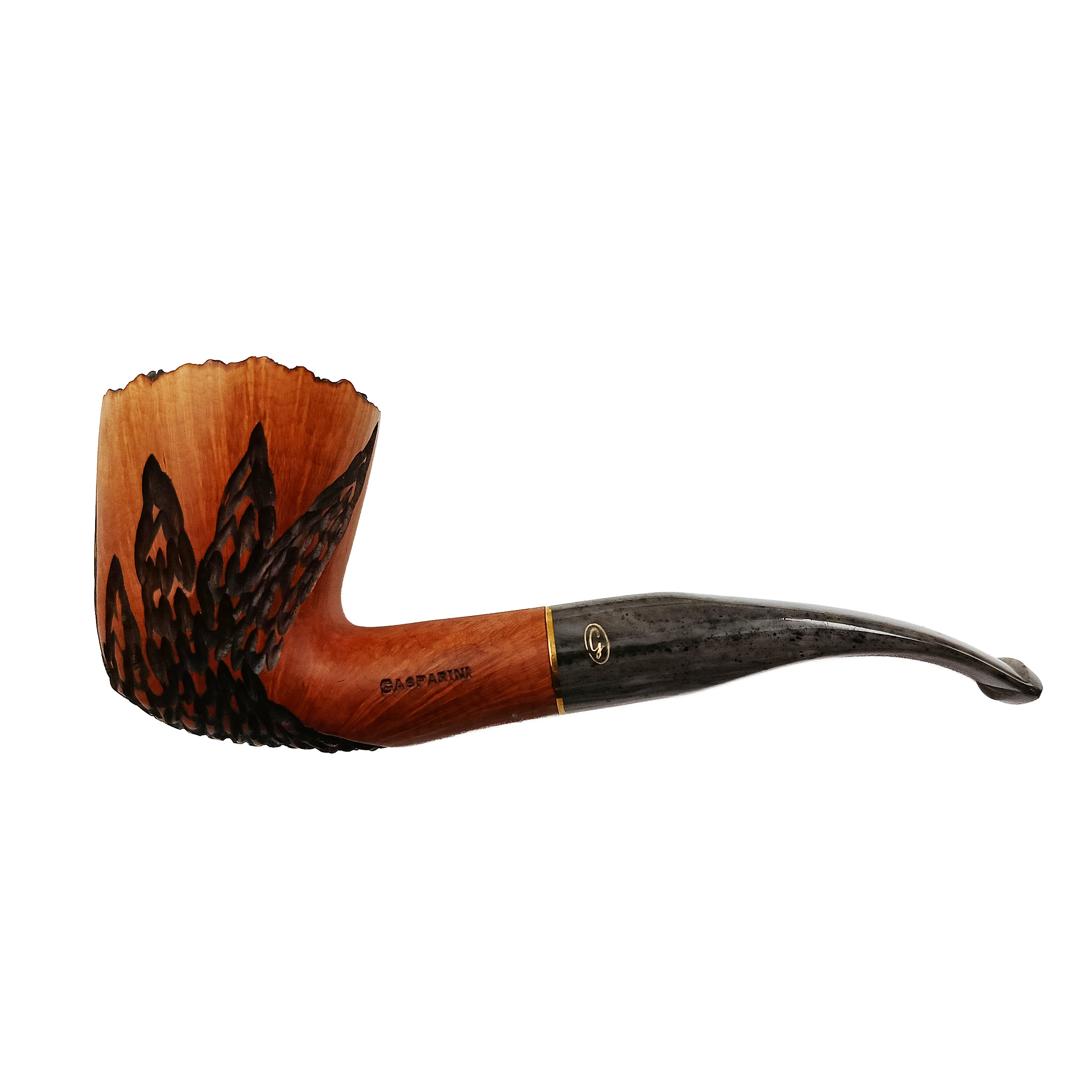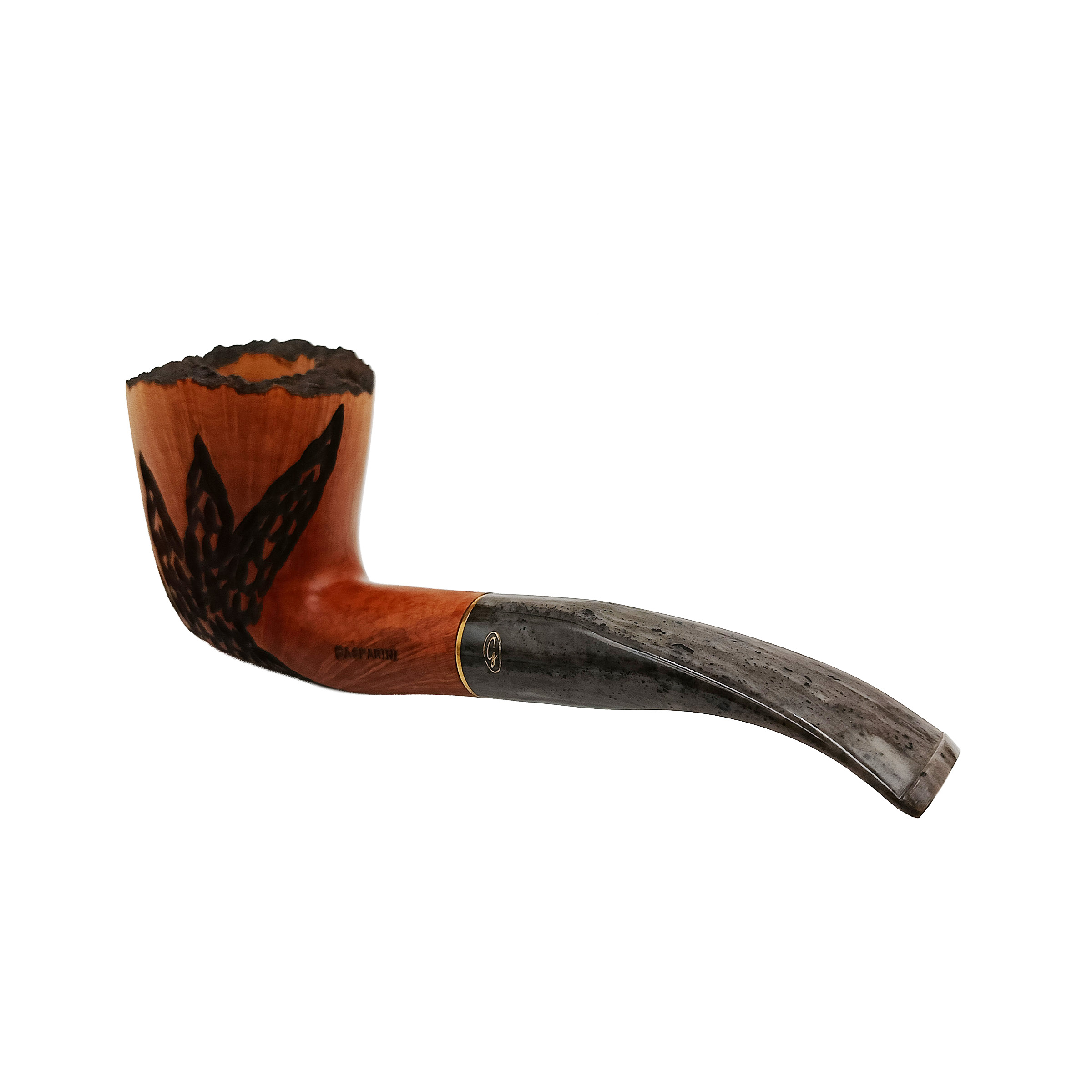 Scopri la naturale eleganza della Pipa Gasparini Half Bent Dublin, un modello artigianale realizzato in radica Fine Bruyere e rifinito interamente a mano secondo la tradizione pipearia italiana. La forma Dublin, caratterizzata dalla testa che si allarga verso l'alto garantendo una combustione uniforme, offre una fumata equilibrata, asciutta e particolarmente aromatica anche nelle sessioni piu lunghe.L'estetica di questa pipa si distingue grazie al contrasto tra la parte superiore liscia in Noce Chiaro e la lavorazione rustica scura che avvolge la base del fornello con incisioni profonde e irregolari. Questo gioco di superfici, tipico delle pipe Gasparini, valorizza le venature naturali della radica e aggiunge una texture che migliora la presa durante l'utilizzo.Il bocchino curvo in acrilico marmorizzato grigio, arricchito dal logo Gasparini e da una veretta oro, dona un tocco distintivo e contemporaneo, garantendo al tempo stesso comodita, postura naturale e un flusso d'aria costante. Al suo interno e presente il filtro in balsa da 9 mm, ideale per assorbire l'umidita in eccesso mantenendo inalterato l'aroma del tabacco.Caratteristiche Tecniche:• Materiale: Radica Fine Bruyere• Forma: Half Bent Dublin• Colore: Noce Chiaro con rusticatura scura• Finissaggio: Parte superiore liscia e parte inferiore rustica a taglio profondo• Bocchino: Curvo in acrilico marmorizzato grigio con logo Gasparini e veretta oro• Lunghezza totale: 144 mm• Profondita fornello: 45 mm• Diametro interno fornello: 19.8 mm• Diametro esterno fornello: da 37 mm nella parte inferiore a 41.7 mm nella parte superiore• Filtro: 9 mm in balsa• Peso: 51 g• Origine: Artigianato italiano di alta qualita - Pipe GaspariniQuesta pipa rappresenta un perfetto equilibrio tra estetica, funzionalita e tradizione artigianale italiana. Ogni dettaglio, dalla rusticatura alla lucidatura del bocchino, e frutto di una lavorazione manuale che rende ogni pezzo unico e distinto, con leggere variazioni nelle venature e nei toni del legno.ATTENZIONEEssendo un prodotto artigianale, venature e tonalita possono variare in base alla radica utilizzata. Le immagini pubblicate sono fotografie reali in alta definizione per garantire la massima fedelta visiva.La pipa e fornita con sacchetto Gasparini e confezione semirigida in cartone.
