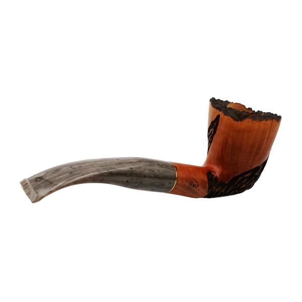Scopri la naturale eleganza della Pipa Gasparini Half Bent Dublin, un modello artigianale realizzato in radica Fine Bruyere e rifinito interamente a mano secondo la tradizione pipearia italiana. La forma Dublin, caratterizzata dalla testa che si allarga verso l'alto garantendo una combustione uniforme, offre una fumata equilibrata, asciutta e particolarmente aromatica anche nelle sessioni piu lunghe.L'estetica di questa pipa si distingue grazie al contrasto tra la parte superiore liscia in Noce Chiaro e la lavorazione rustica scura che avvolge la base del fornello con incisioni profonde e irregolari. Questo gioco di superfici, tipico delle pipe Gasparini, valorizza le venature naturali della radica e aggiunge una texture che migliora la presa durante l'utilizzo.Il bocchino curvo in acrilico marmorizzato grigio, arricchito dal logo Gasparini e da una veretta oro, dona un tocco distintivo e contemporaneo, garantendo al tempo stesso comodita, postura naturale e un flusso d'aria costante. Al suo interno e presente il filtro in balsa da 9 mm, ideale per assorbire l'umidita in eccesso mantenendo inalterato l'aroma del tabacco.Caratteristiche Tecniche:• Materiale: Radica Fine Bruyere• Forma: Half Bent Dublin• Colore: Noce Chiaro con rusticatura scura• Finissaggio: Parte superiore liscia e parte inferiore rustica a taglio profondo• Bocchino: Curvo in acrilico marmorizzato grigio con logo Gasparini e veretta oro• Lunghezza totale: 144 mm• Profondita fornello: 45 mm• Diametro interno fornello: 19.8 mm• Diametro esterno fornello: da 37 mm nella parte inferiore a 41.7 mm nella parte superiore• Filtro: 9 mm in balsa• Peso: 51 g• Origine: Artigianato italiano di alta qualita - Pipe GaspariniQuesta pipa rappresenta un perfetto equilibrio tra estetica, funzionalita e tradizione artigianale italiana. Ogni dettaglio, dalla rusticatura alla lucidatura del bocchino, e frutto di una lavorazione manuale che rende ogni pezzo unico e distinto, con leggere variazioni nelle venature e nei toni del legno.ATTENZIONEEssendo un prodotto artigianale, venature e tonalita possono variare in base alla radica utilizzata. Le immagini pubblicate sono fotografie reali in alta definizione per garantire la massima fedelta visiva.La pipa e fornita con sacchetto Gasparini e confezione semirigida in cartone.