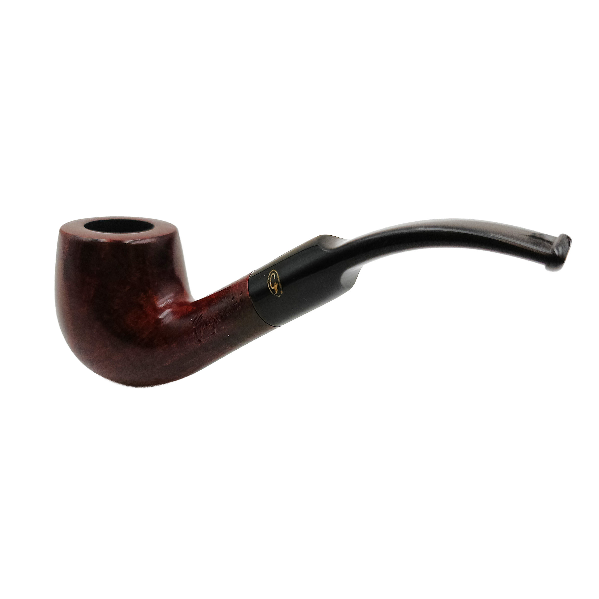 Scopri la purezza delle linee e la tradizione piparia italiana con la Pipa Gasparini Liscia Bent Billiard, un modello elegante e compatto realizzato interamente a mano in radica selezionata. La forma Bent Billiard, caratterizzata dal fornello arrotondato e dal leggero piegamento del cannello, garantisce una presa naturale e una postura particolarmente confortevole durante la fumata.La finitura liscia valorizza le venature profonde della radica, esaltate da una colorazione marrone scuro uniforme che dona alla pipa un carattere classico e senza tempo. La superficie levigata permette di apprezzare al tatto la qualità della lavorazione artigianale, mentre la compatezza del fornello la rende ideale per fumate più brevi e regolari.Il bocchino curvo in plexiglas nero, impreziosito dal logo Gasparini, assicura una buona ergonomia e un flusso d'aria costante. All'interno è presente un filtro metallico lavabile da 3 mm, una soluzione pratica e durevole pensata per trattenere impurità e umidità senza alterare l'aroma del tabacco.Caratteristiche Tecniche:• Materiale: Radica• Forma: Bent Billiard• Colore: Marrone scuro lucido• Finissaggio: Liscia• Bocchino: Curvo in plexiglas nero con logo Gasparini• Lunghezza totale: 126 mm• Profondita fornello: 33 mm• Diametro interno fornello: 18 mm• Diametro esterno fornello: 32.3 mm• Filtro: 3 mm in metallo lavabile• Peso: 40 g• Origine: Artigianato italiano di alta qualita - Pipe GaspariniATTENZIONEEssendo un prodotto artigianale, venature e tonalita possono variare in base alla radica utilizzata. Le immagini pubblicate sono fotografie reali in alta definizione per garantire la massima fedelta visiva.La pipa e fornita con sacchetto Gasparini e confezione semirigida in cartone.