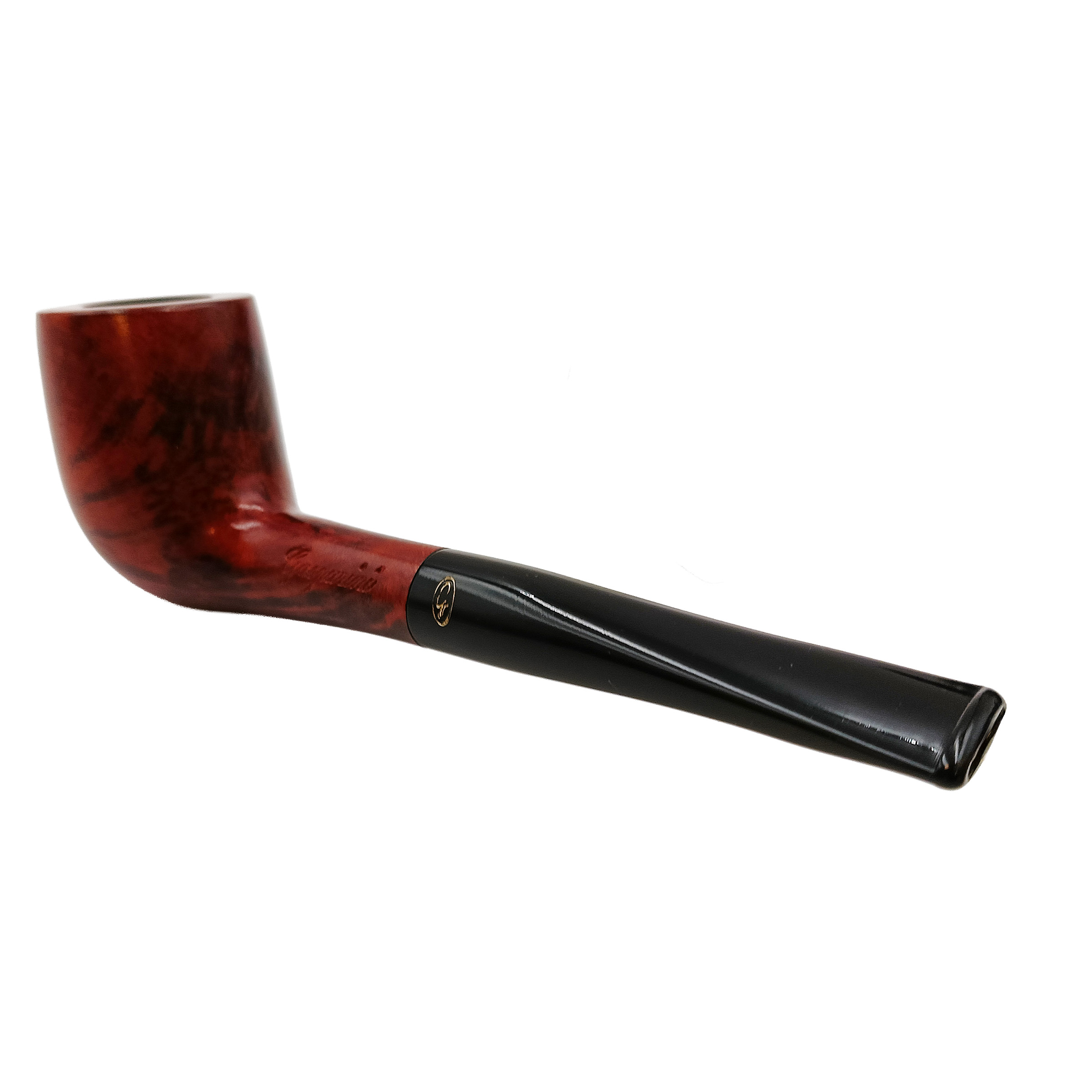 La radica liscia si presenta in un caldo Marrone Rossiccio con venature naturali che emergono sotto la finitura semilucida, conferendo profondità e carattere a ogni singolo pezzo. Essendo un prodotto artigianale, i movimenti delle venature e la tonalità del colore rendono ogni pipa unica e riconoscibile.