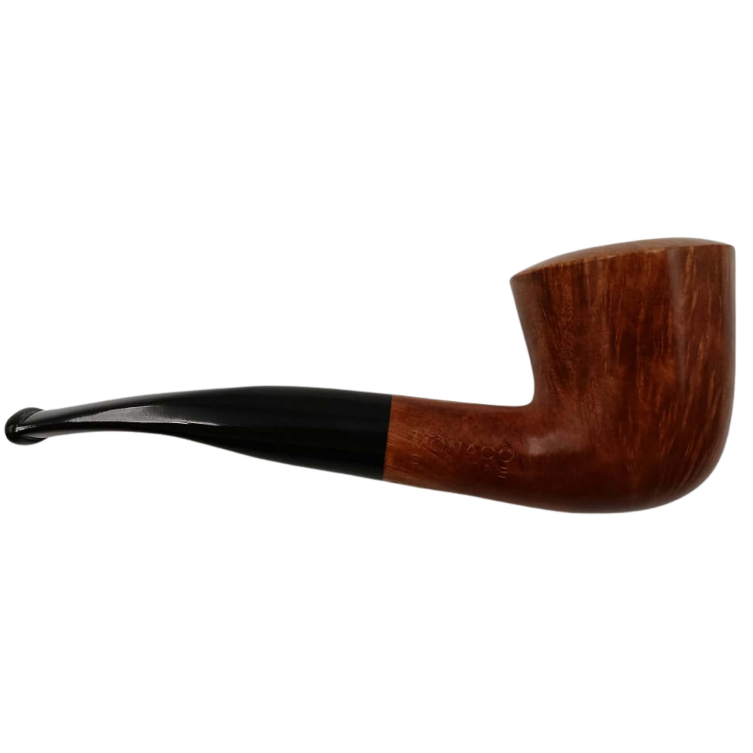 • Materiale: La radica utilizzata per la realizzazione della pipa è selezionata e lavorata con cura, resistente al calore e capace di sviluppare una patina naturale che ne arricchisce il carattere con l’uso nel tempo.