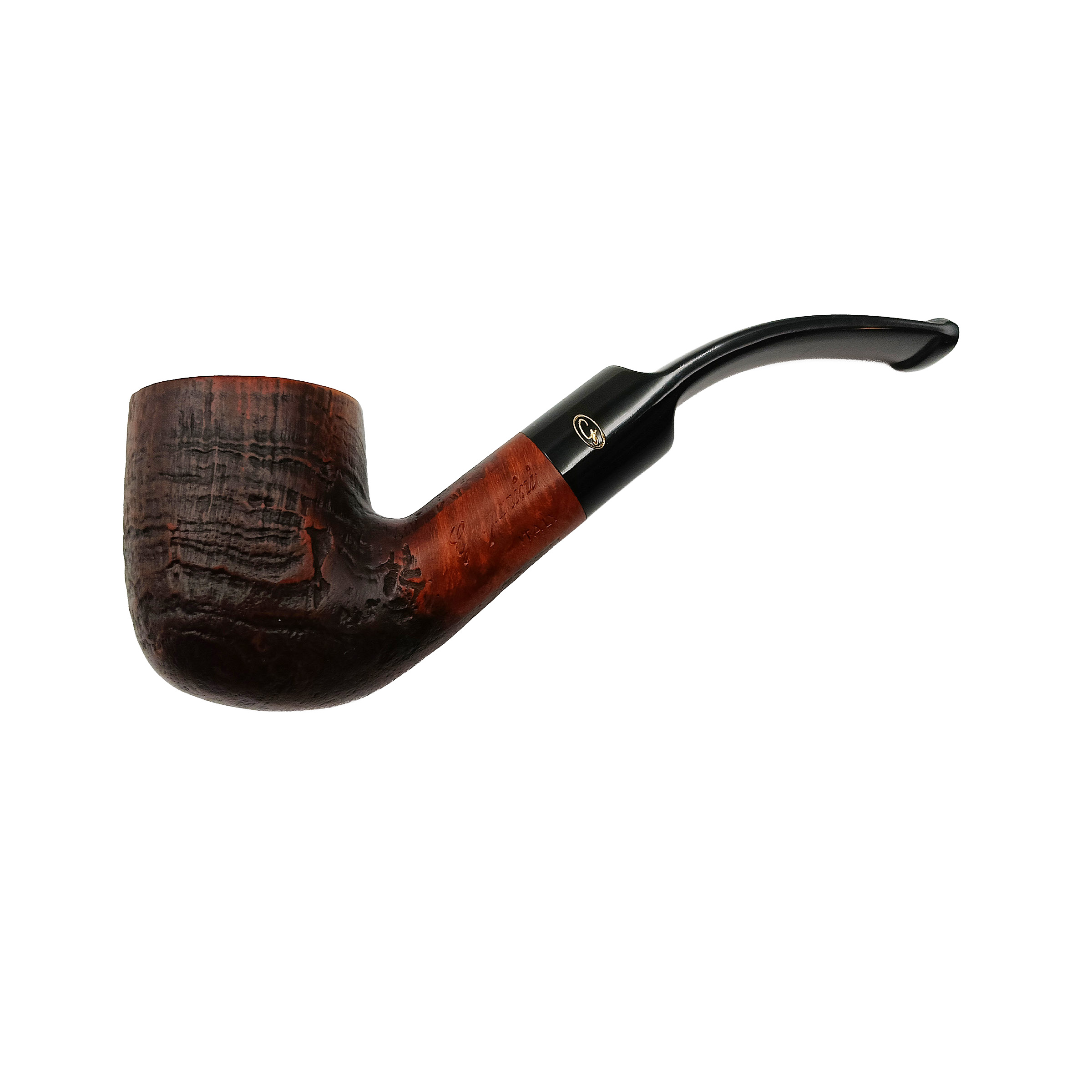 La finitura sabbiata mette in risalto la struttura naturale della radica attraverso una texture ricca e irregolare che esalta contrasti e profondità cromatiche. Questo trattamento non solo valorizza l'estetica della pipa, ma migliora anche la presa grazie alla superficie ruvida e materica.