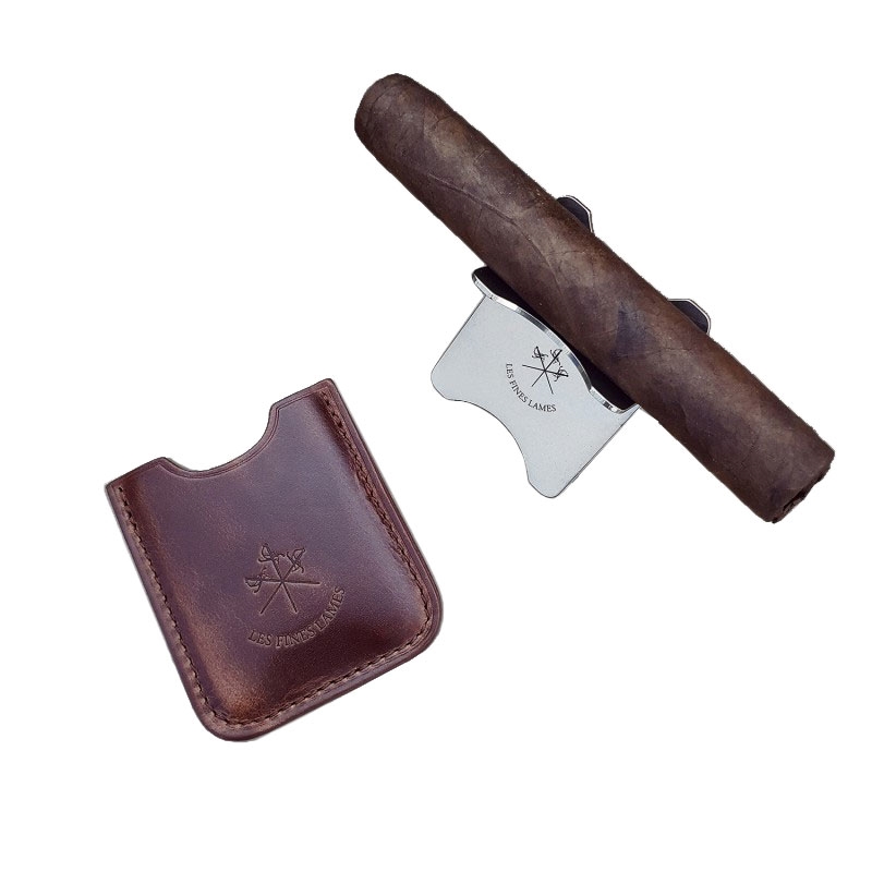 Poggiasigari acciaio inox Les Fines Lames con custodia cuoio