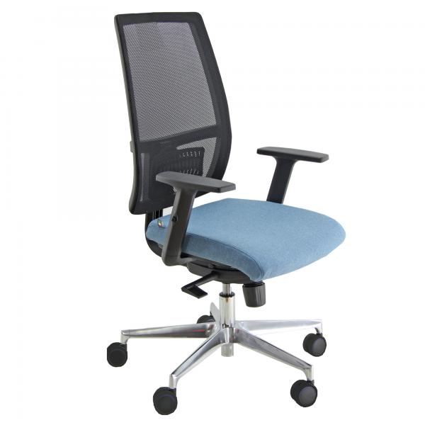 SEDUTA SEMIDIREZIONALE ERGONOMICA GIREVOLE CON ELEVAZIONE A GAS - MECCANISMO SYNCHRO CON 4 BLOCCHI ANTI SHOCKREGOLAZIONE PESOMECCANISMO A CONTATTO PERMANENTE - SUPPORTO LOMBARE REGOLABILE IN ALTEZZA E PROFONDITA' - SCHIENALE IN RETE NERO REGOLABILE IN ALTEZZA CON MECCANISMO UP-DOWN - SEDILE INTERCAMBIABILE - BASE ALLUMINIO. RIVESTIMENTO SEDUTA IN TESSUTO ''SUPER - KING L'' 100% TREVIRA REAZIONE AL FUOCO CLASSE 1. COMPLETA DI BRACCIOLI REGOLABILI. ALT.TOT.: 102-113CM PROF.TOT.: 68CM ALT.SCHIENALE: 60CM