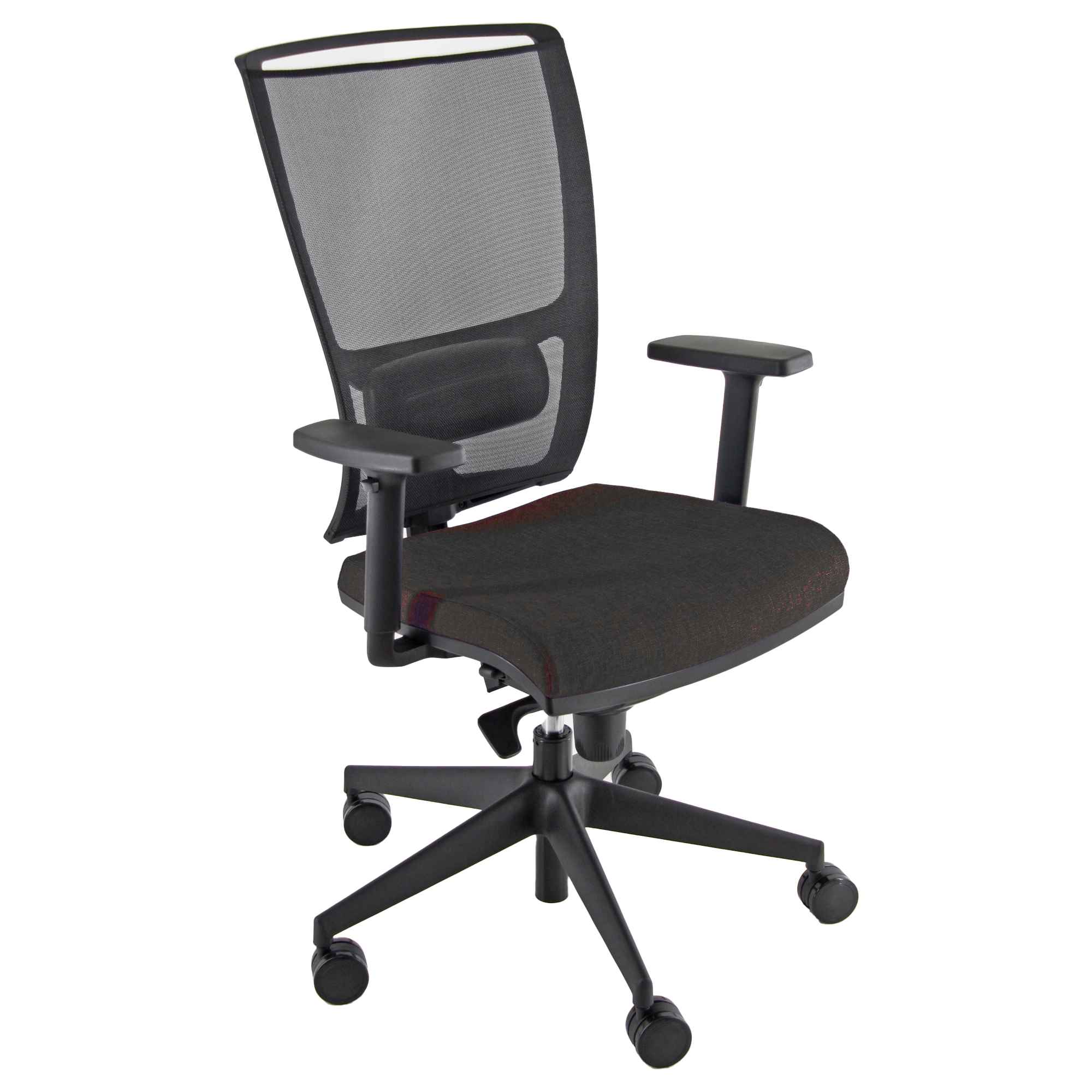 POLTRONA SEMIDIREZIONALE H12 (ADATTA PER USO INTENSO). SCHIENALE ALTO IN RETE NERA CON SUPPORTO LOMBARE REGOLABILE. RIVESTIMENTO SEDUTA IN ACRILICO IGNIFUGO. BRACCIOLI REGOLABILI E BASE IN NYLON. MECCANISMO SYNCRO. MECCANISMO ANTI SHOCK, MECCANISMO A CONTATTO PERMANENTE. SCHIENALE REGOLABILE UP-DOWN. SEDILE CON TRASLATORE REGOLABILE IN PROFONDITA'. ELEVAZIONE A GAS.