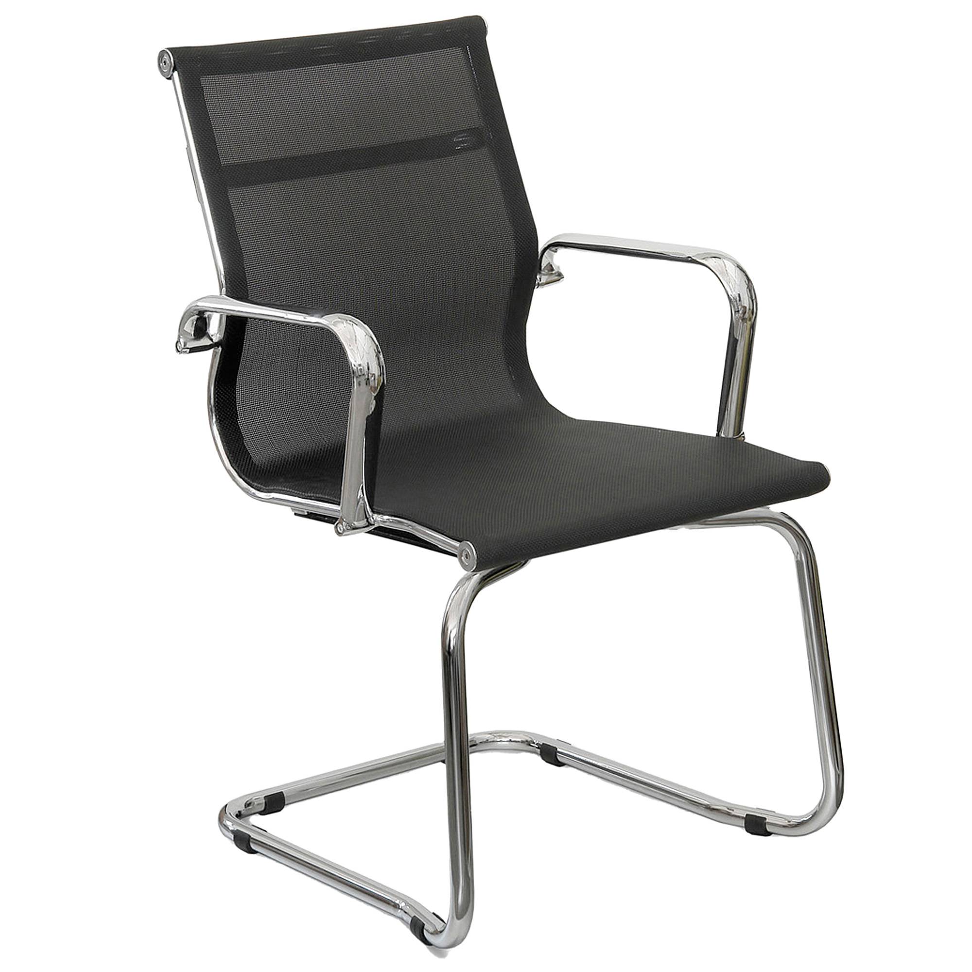 SEDUTA VISITATORE IN ACCIAIO CROMATO. RIVESTIMENTO IN RETE PORTANTE DI COLORE NERO. POLTRONA CON SCHIENALE BASSO CON SUPPORTO LOMBARE. BRACCIOLI INCLUSI (NON RIMOVIBILI). ALT. TOT: 98CM PROFONDITA' TOT: 55CM ALT. SCHIENALE: 53CM LARGHEZZA SCHIENALE: 46CM LARGHEZZA SEDILE: 48CM PROFONDITA' SEDILE: 45CM.