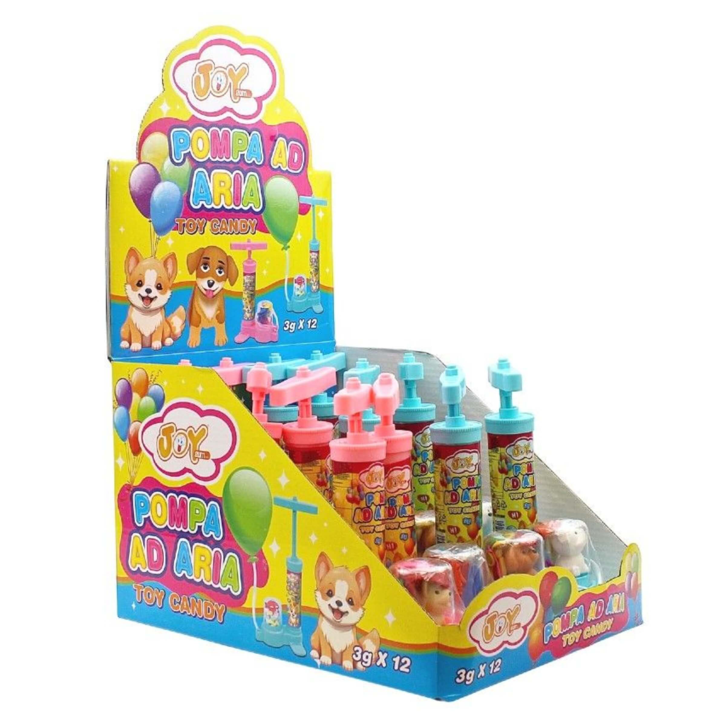 Quando il gioco incontra la sorpresa, nasce una combinazione irresistibile per il pubblico più giovane. La Pompa ad Aria Balloon di Joygum è molto più di un semplice giocattolo: è un’esperienza interattiva che coinvolge mani, occhi e sorriso. Con la sua forma colorata, questa mini pompa d’aria è progettata per gonfiare veri palloncini, regalando minuti di puro divertimento. Ma non è finita qui: alla base di ogni pompa è presente un piccolo cucciolo collezionabile e all’interno sono nascoste caramelle incartate, tutte al gusto fruttato. L’effetto sorpresa è garantito e il formato la rende perfetta per l’esposizione su bancone in negozi, tabaccherie o chioschi.• Giocattolo pompa ad aria funzionante: Ogni confezione contiene una mini pompa in plastica alta circa 16 centimetri, capace di gonfiare veri palloncini collegati tramite tubicino.• Inclusi 8 palloncini: Ogni unità è dotata di otto palloncini colorati da gonfiare con la pompa, per stimolare il gioco attivo e la coordinazione.• Cucciolo collezionabile integrato: Alla base della pompa si trova un piccolo animaletto in plastica, visibile attraverso una cupoletta trasparente, disponibile in vari soggetti assortiti.• Peso netto 3 grammi: Oltre al gioco, ogni confezione contiene caramelle incartate al gusto tutti i frutti, per un momento di dolcezza a sorpresa.• Display da 12 pezzi: Il pratico espositore da banco contiene 12 unità complete, perfettamente visibili e pronte per essere offerte al pubblico in maniera ordinata e accattivante.Colorata, dinamica e multifunzione, la Pompa ad Aria Balloon di Joygum è un’idea originale che coniuga movimento, collezionabilità e golosità. Un prodotto pensato per catturare l’attenzione, stimolare la fantasia e offrire piccoli momenti di gioia, in un formato compatto e perfetto per la vendita al dettaglio.