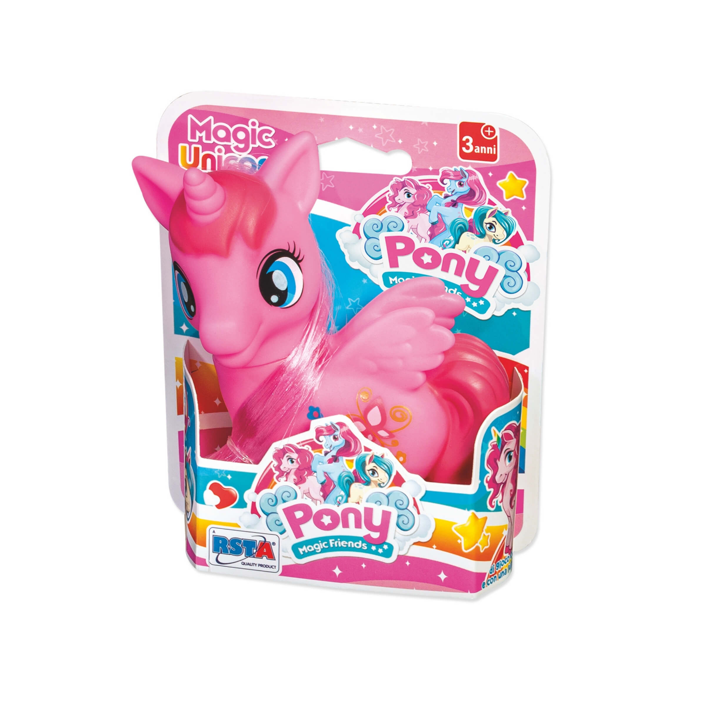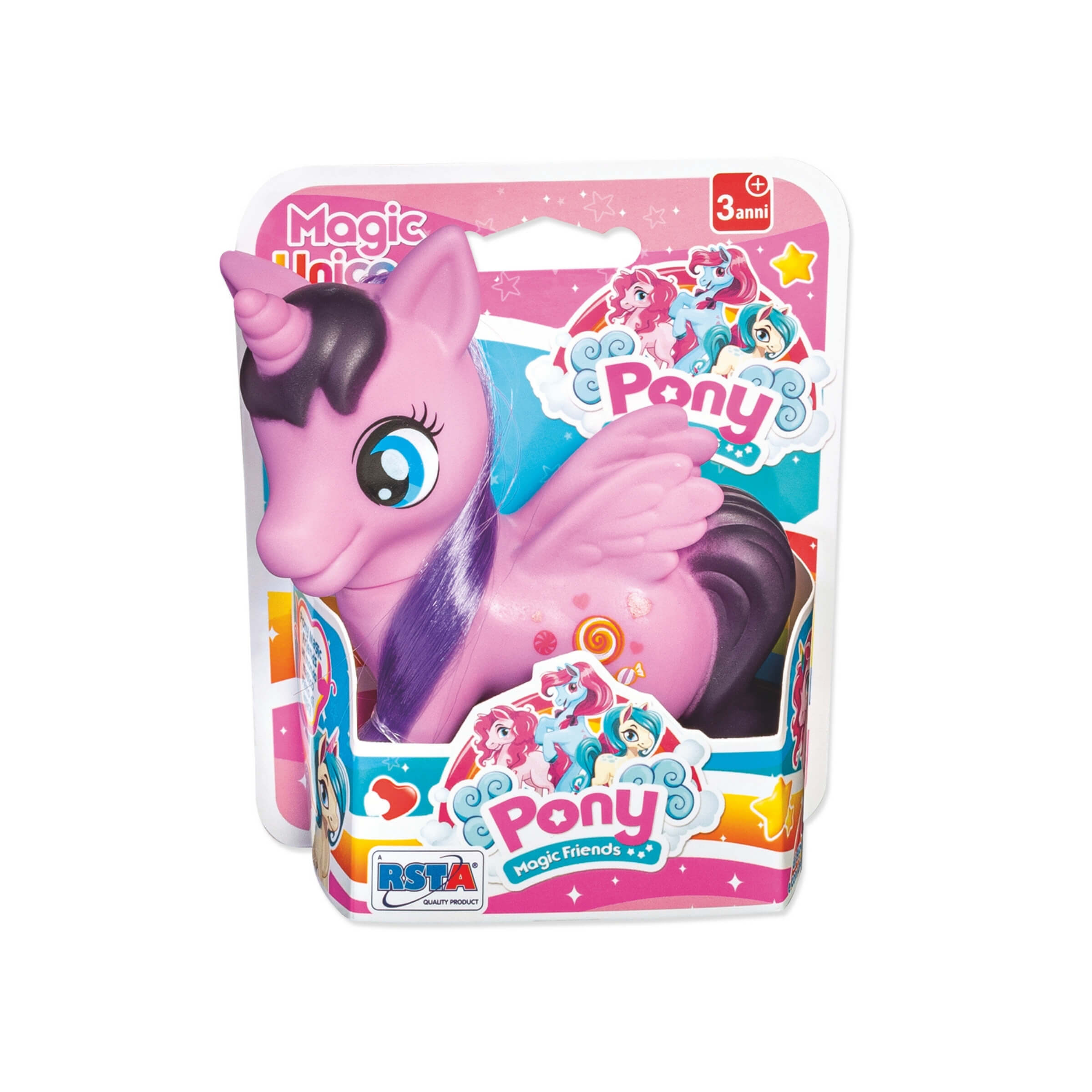 Realizzato in plastica sicura e priva di sostanze nocive, il pony è conforme alle normative EN71-1, EN71-2, EN71-3 e al regolamento REACH. È venduto in un pratico espositore da 12 pezzi assortiti in tre varianti di colore, con dimensioni totali del display pari a 30 centimetri di larghezza, 13 di altezza e 17.5 di profondità. Ogni esemplare è un piccolo scrigno di fantasia, pronto a trasformarsi in un’amica di giochi, una principessa alata o una guida in mondi da inventare.